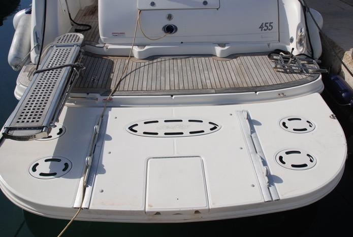 Cojines en asientos de popa, Ducha en bañera, Escalera de baño, Mesa en bañera (electrica convertible en solarium), Pasarela hidráulica