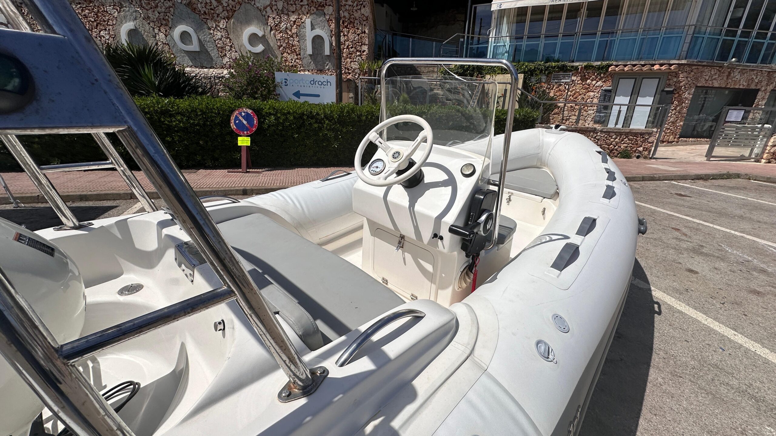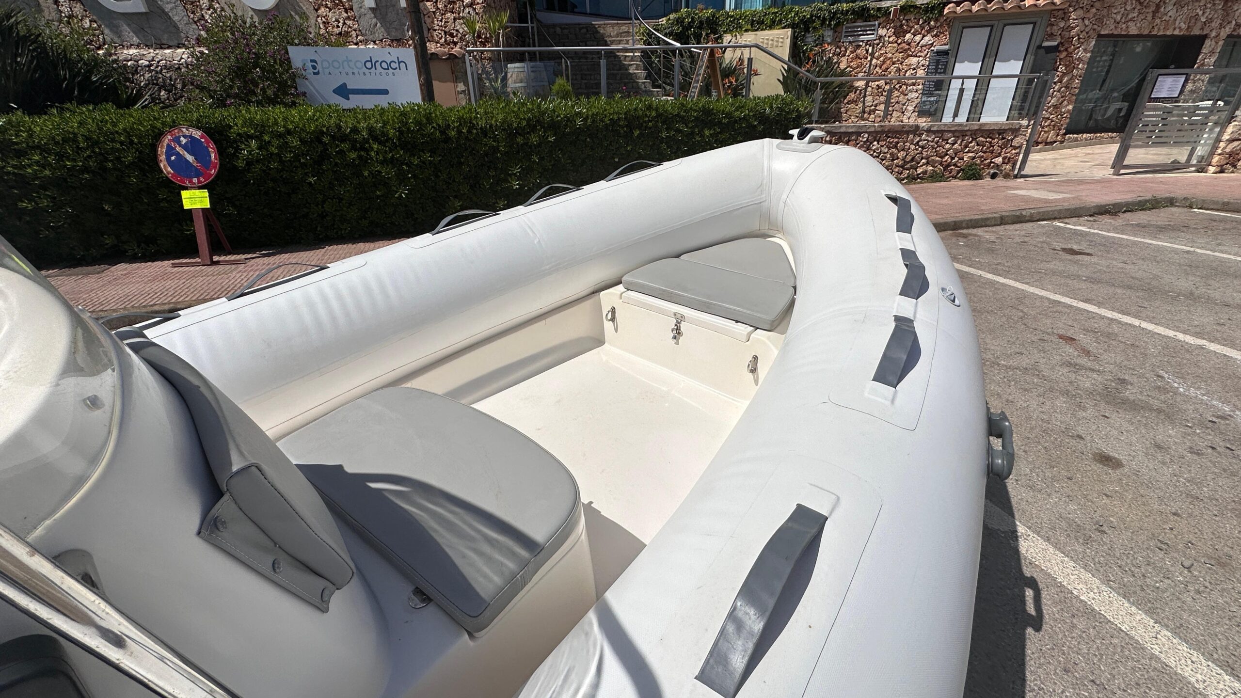 Esta lancha semirrígida es perfecta como barco de iniciación o embarcación auxiliar, ideal para explorar calas, practicar deportes acuáticos o disfrutar de paseos por la costa.