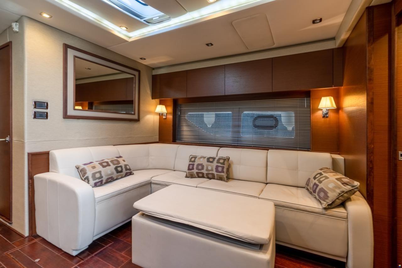 El refinamiento y elegancia redefinen a este modelo desde los asientos deportivos, con su estructura envolvente hasta el sillón reclinable con sus reposapiés que ofrecen la emocionante conducción «rápida», pensada para ese gusto por la libertad total, así como su amplia popa con un wetbar/ grill y nevera.