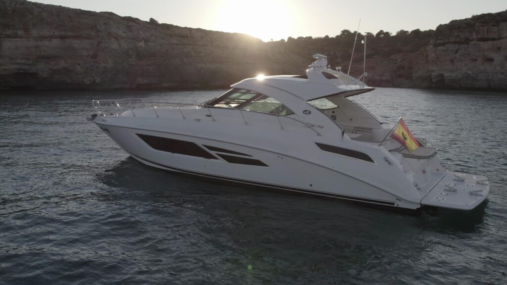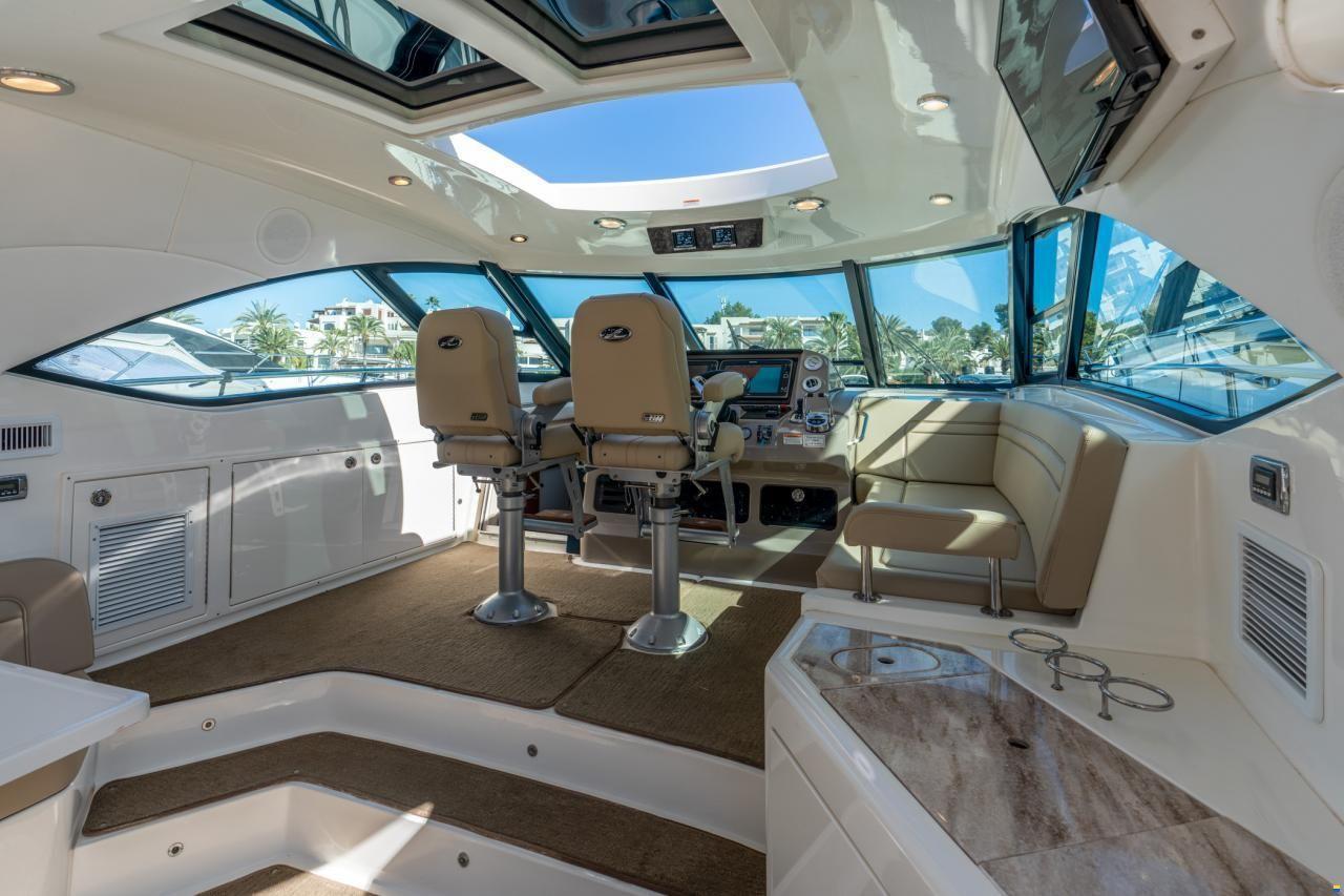 famoso diseño de cabina media Sundancer, y se presenta con el aire de lujo y navegabilidad que es inherente a cada yate Sea Ray.