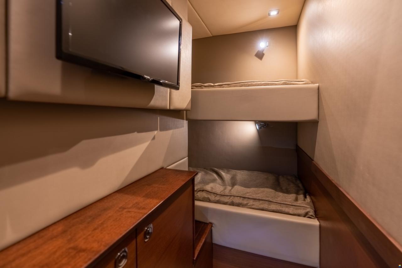 Camarote : Cama tamaño Queen con colchón de muelles, almohadas, sábanas, colcha coordinada, cajones y almacenamiento debajo, Centro de entretenimiento:, Receptor de audio/video Harman/Kardon® AVR 3700 y módulo Acoustimass de Bose con altavoces de cubo de reflexión directa (2), Televisor, LED de 32″ / Smart con reproductor Blu-ray™ con control remoto, Espejo, grande – Con marco, Armario de almacenamiento con estantes