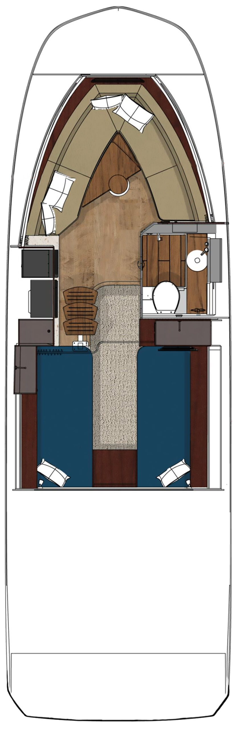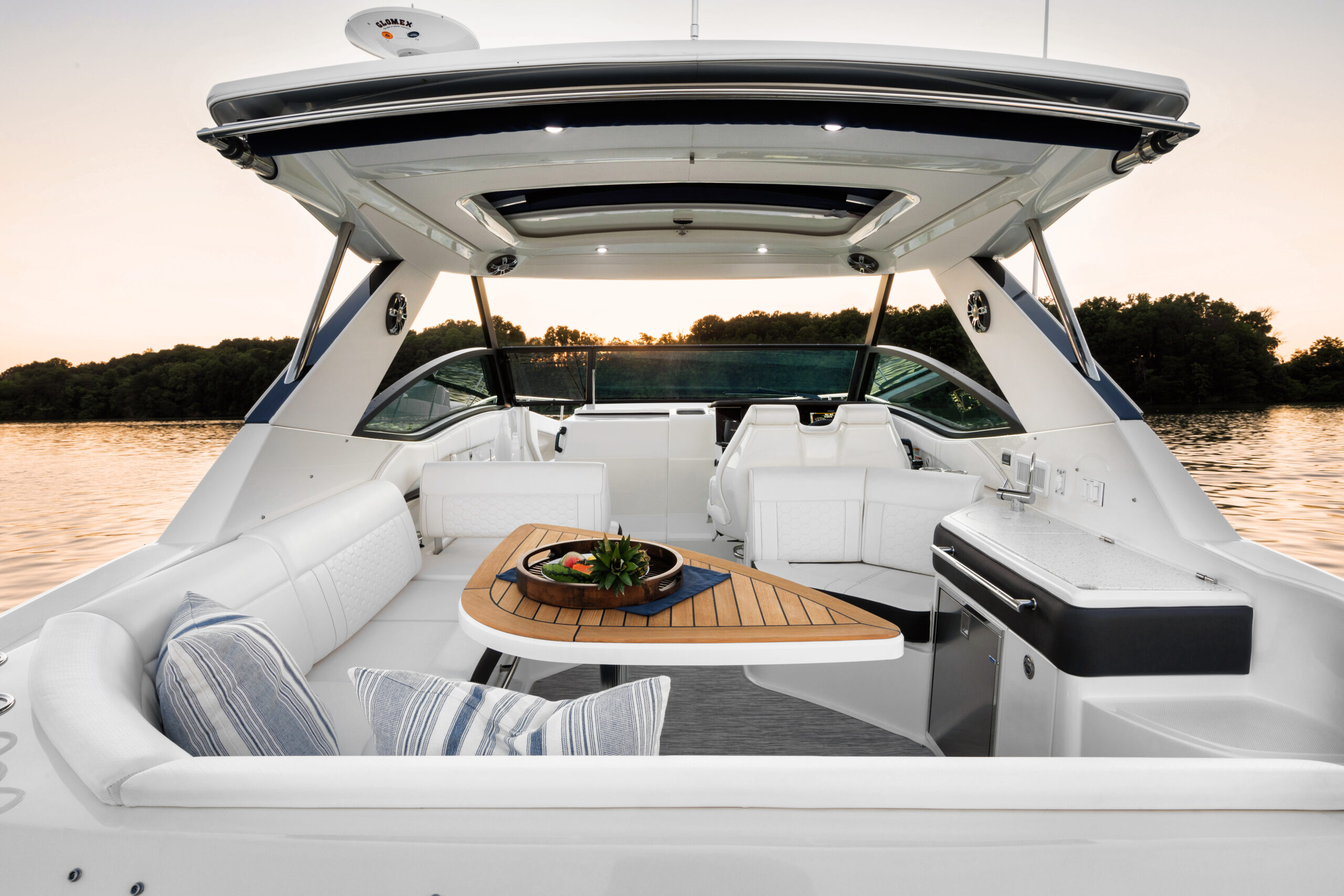 Experimente la diferencia que supone un diseño que combina a la perfección lujo y practicidad. Desde la espaciosa zona de descanso en la proa hasta la elegante y cómoda cabina, el Sundancer® 320 está diseñado para impresionar. La versatilidad y la fluidez entre los espacios interiores y exteriores confieren al Sundancer 320 una elegancia espaciosa que lo distingue claramente de los cruceros deportivos tradicionales.