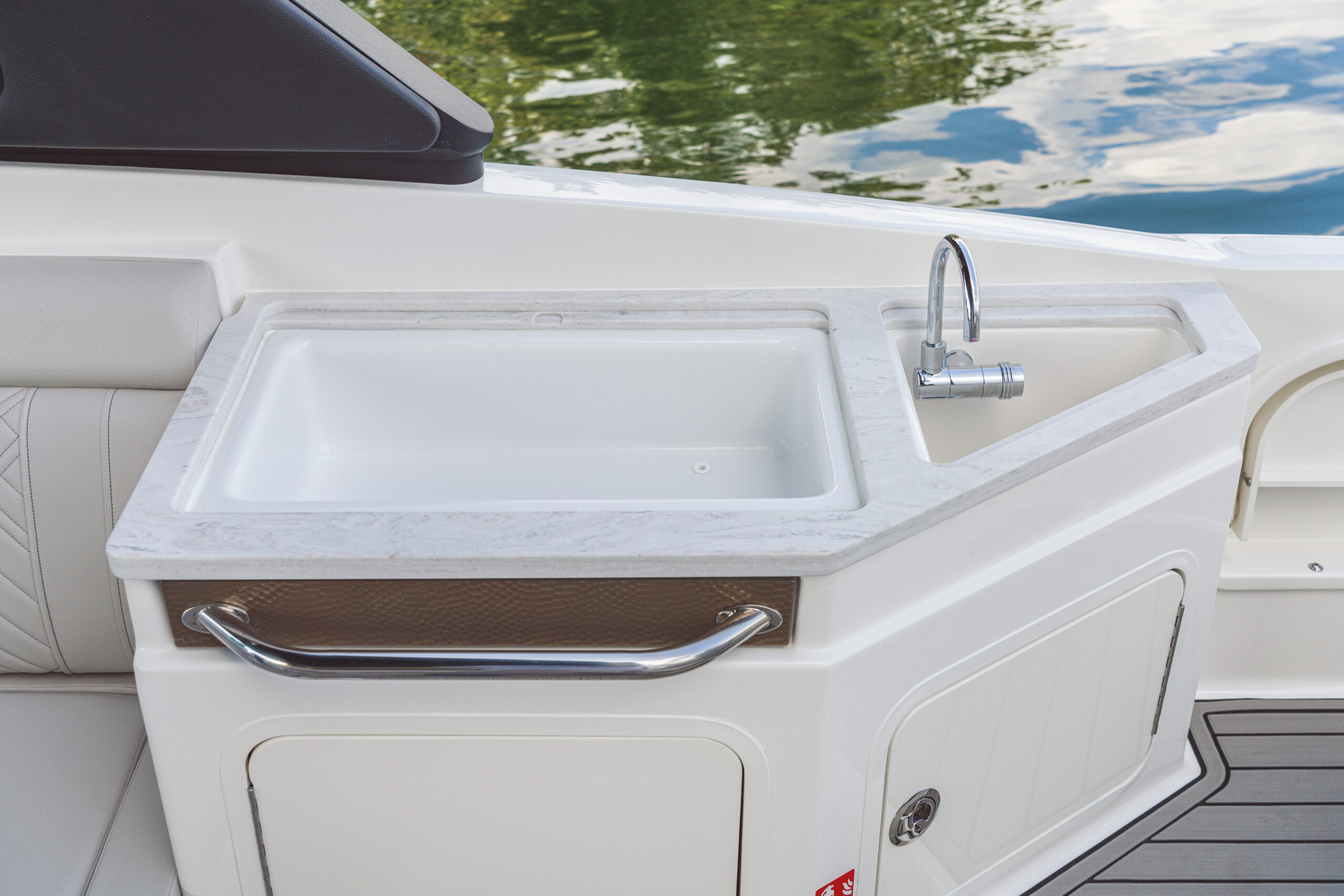 Diseñado para ofrecer confort y maniobrabilidad el SDX 290® Outboard, con certificación de yate ofrece una experiencia de navegación realmente excepcional, con un rendimiento silencioso y potente y asientos elegantes y cómodos. Desde la proa hasta la popa, desde el bar de serie hasta el frigorífico y la parrilla eléctrica opcionales, los diseñadores de Sea Ray han cuidado cada detalle.