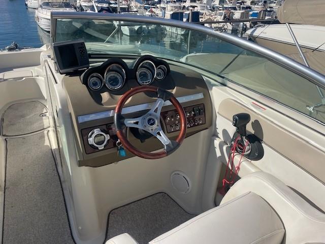 Sea Ray 280 Sundeck (2010). MERCRUISER 496 MAG DTS, BRAVO TRES (375 PS), 680 Stunden. Elektrische Ankerwinde, elektrischer Kühlschrank. Bimini-Top. Österreichische Flagge. WC (VacuFlush).