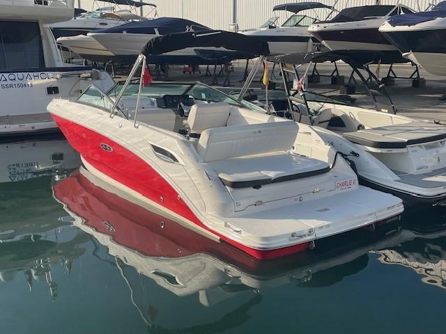 SEA RAY 250 SDXE (2018). Mercruiser 6.2 mpi dts 350 PS, 621 Stunden. Abgaskrümmer dieses Jahr gewechselt. Immer in einem Schuppen außerhalb der Saison gelagert. Kabine. Dusche am Heck.