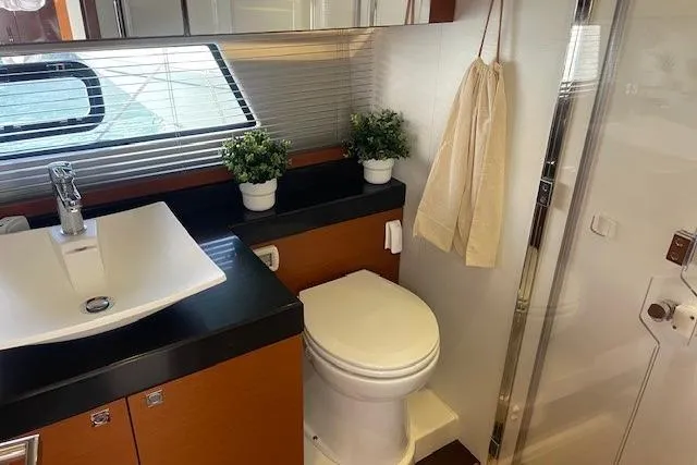 Darüber hinaus bietet die Prestige 500 S eine ganz besondere Überlegung, indem sie eine neue Art der Aufteilung enthüllt: das Konzept einer „Eignersuite“ auf einem Boot von weniger als 50 Fuß.