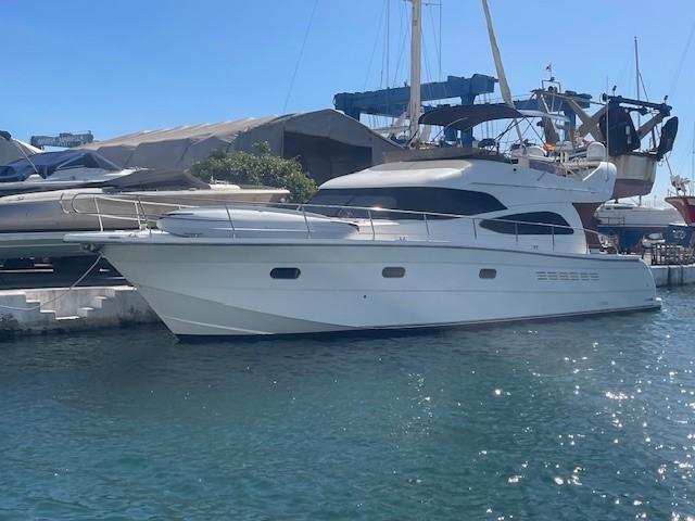 A spacious, extremely safe, and reliable cruiser that is very comfortable, with excellent features and unmatched performance at sea. Considered one of the most competitive models in its class, with spacious interiors and generous exterior spaces. The attention to detail ensures an air of distinction, fully appreciated by those who have experienced the R56.Yacht for sale in GOOD condition, 17.5 m in length and 4.9 m beam, built in 2006, with capacity for 12 passengers in 3 cabins and 2 bathrooms.Twin CATERPILLAR C-12 with 2 x 650 hp with only 774 engine hours.Bow and stern thrusters. Hydraulic gangway, generator, teak, GPS plotter, autopilot, radar, air conditioning, and heating.