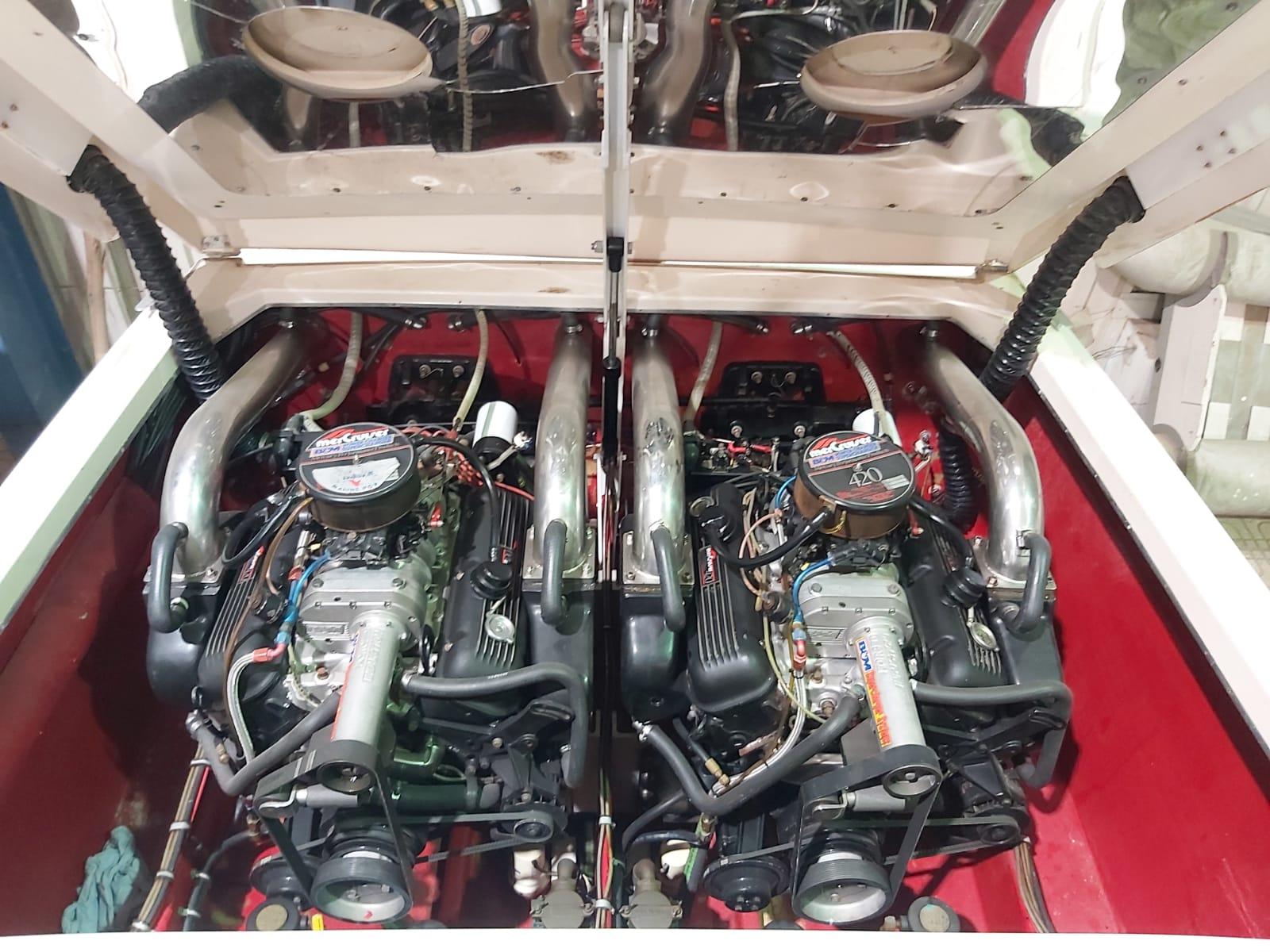 Ferretti 430 from 2002 with 2 x Volvo TAMD 74 480 HP engines with 1845 hours.