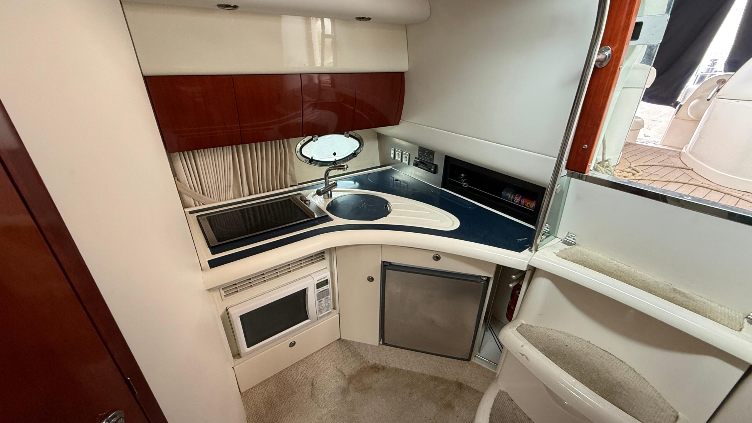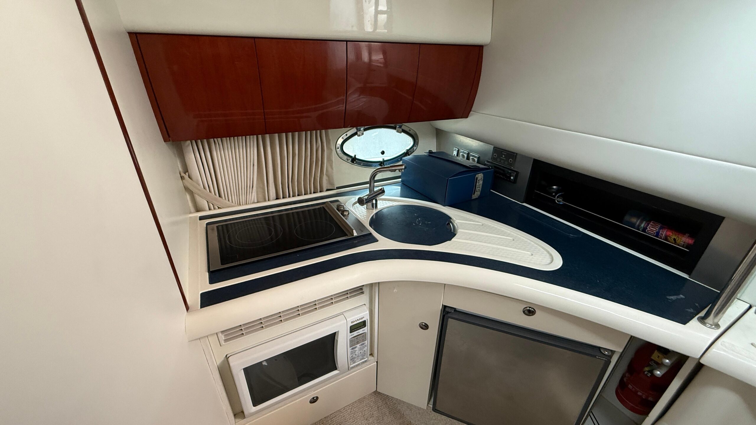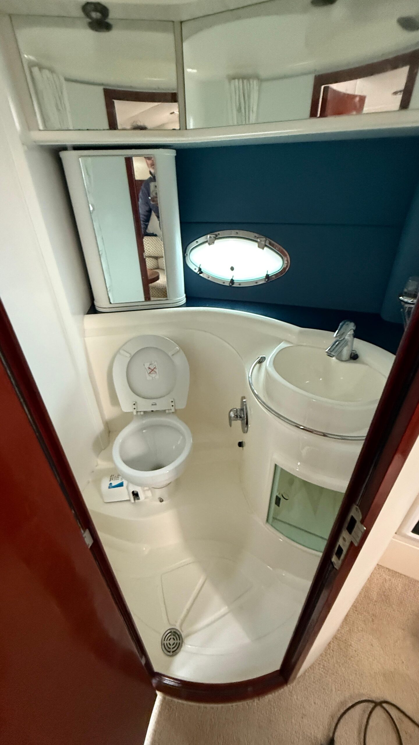 2 separate double cabins with a full head including shower and sink. Full galley. Air conditioning