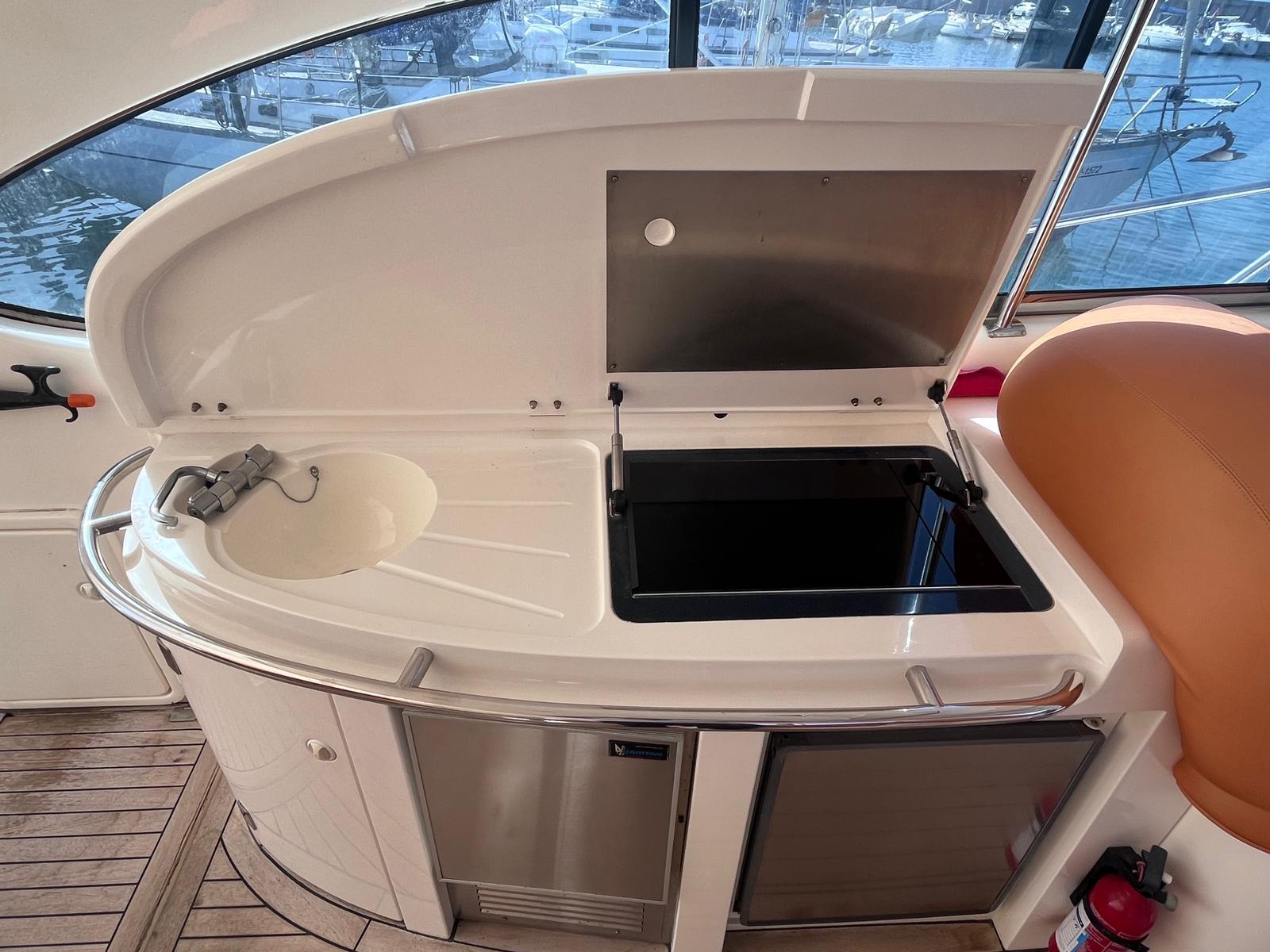 The Sunseeker San Remo 33 is designed to maximize comfort and convenience, with a cozy saloon with convertible seating, a fully equipped galley, and comfortable sleeping quarters. Heating throughout the cabin ensures a comfortable environment in all weather conditions. With a well-thought-out cockpit design, complemented by high-quality upholstery and fittings, the San Remo 33 stands out for its attention to detail and the luxurious boating experience it offers.