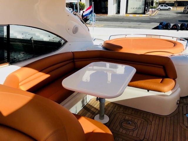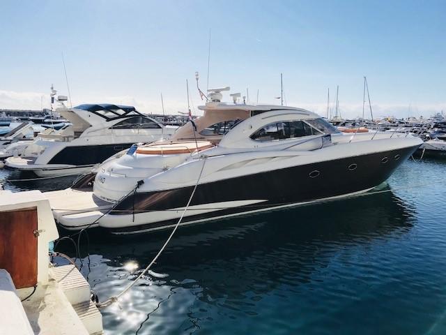 Built in 2000 and completely refitted in 2017, this Sunseeker Predator 60 is in excellent condition. The spacious bow, with a solarium padding, has room for all 12 guests, making this boat ideal for large groups. The Predator 60 has a master cabin with a king size bed and 2 guest cabins, accommodating 4 people. The upper deck has a convertible hard top. A good-sized garage allows for the storage of a tender or water toys. Perfect boat to enjoy an incredible day at sea.