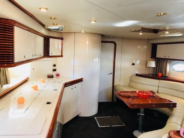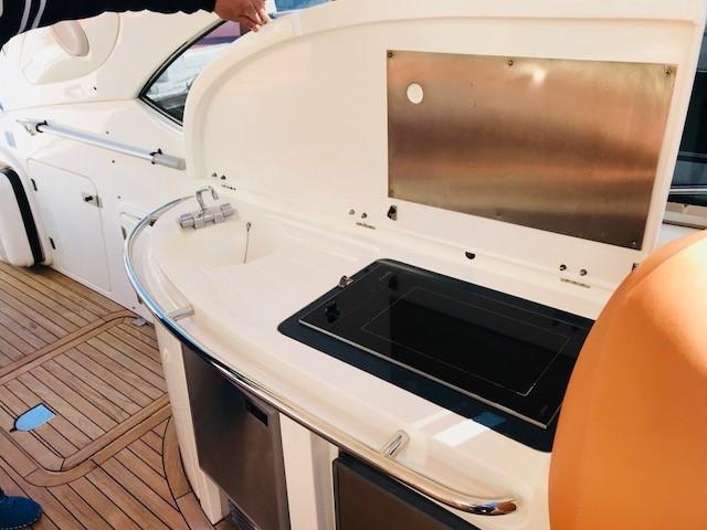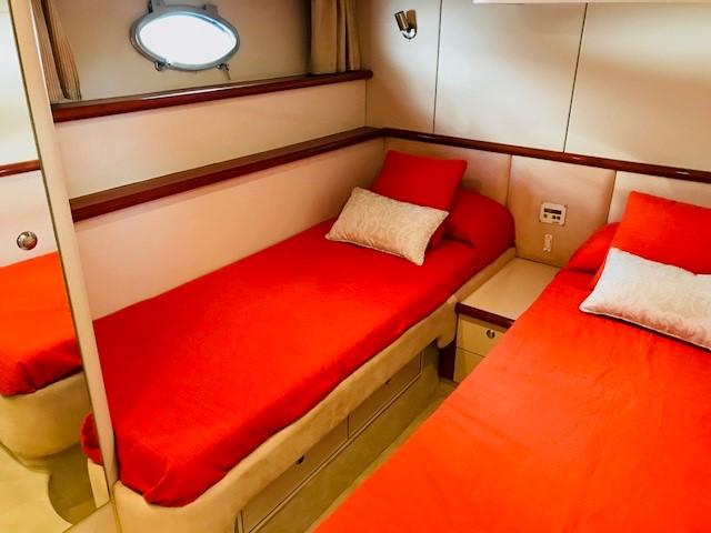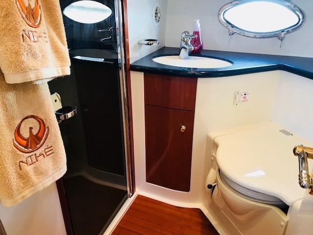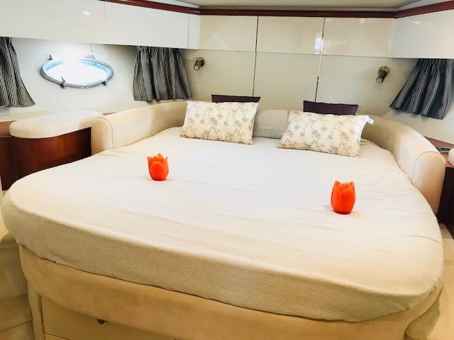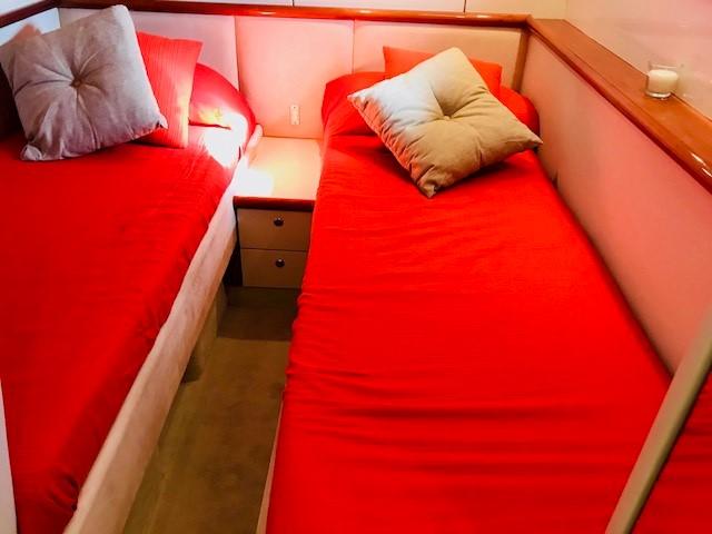 This yacht offers a particularly pleasant and quiet ride. The owner has invested in extra thick insulation in the engine room for extra fire safety and sound insulation.