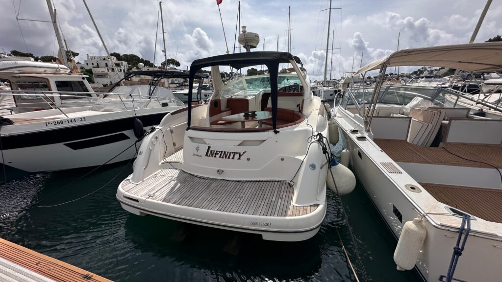 Sunseeker San Remo 33 recently serviced and maintained by the official Volvo team at Marina Marbella Ibiza.