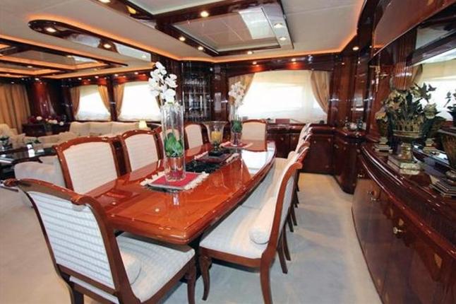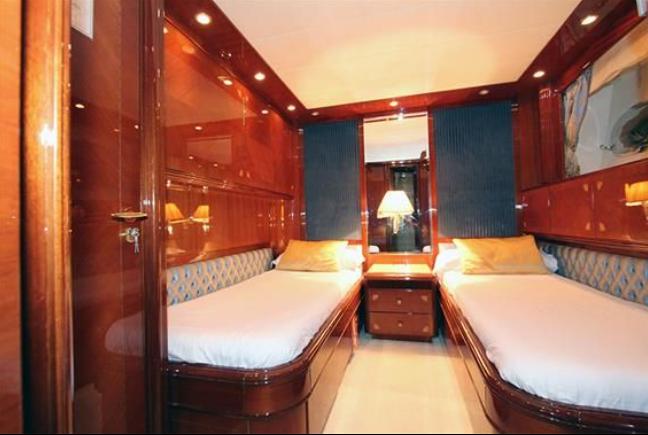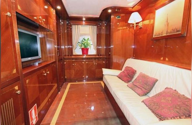 Surround sound system (with speakers in saloon, galley, cabins, bridge and Flybridge ), Flat screen TV (in saloon with electric collection system), Flat screen TV (in all 4 cabins, in entertainment room and captain's cabin), DVD player (with CD and speakers in the saloon)