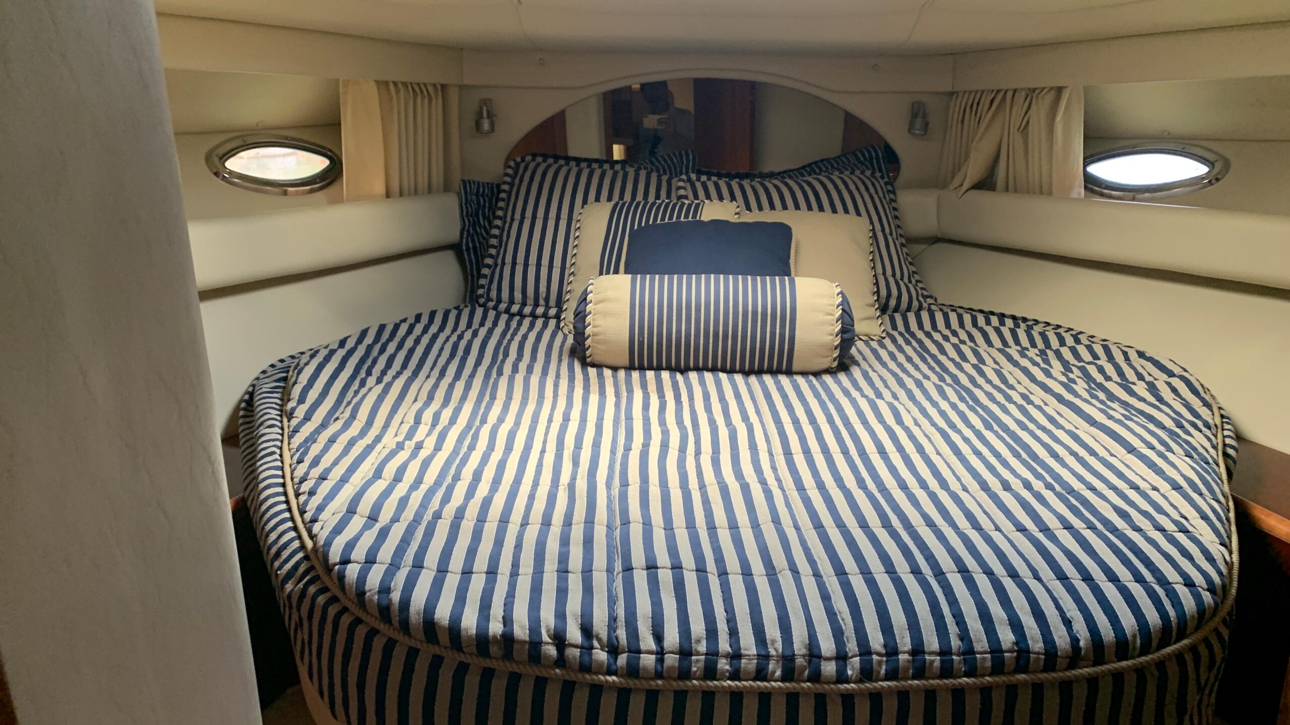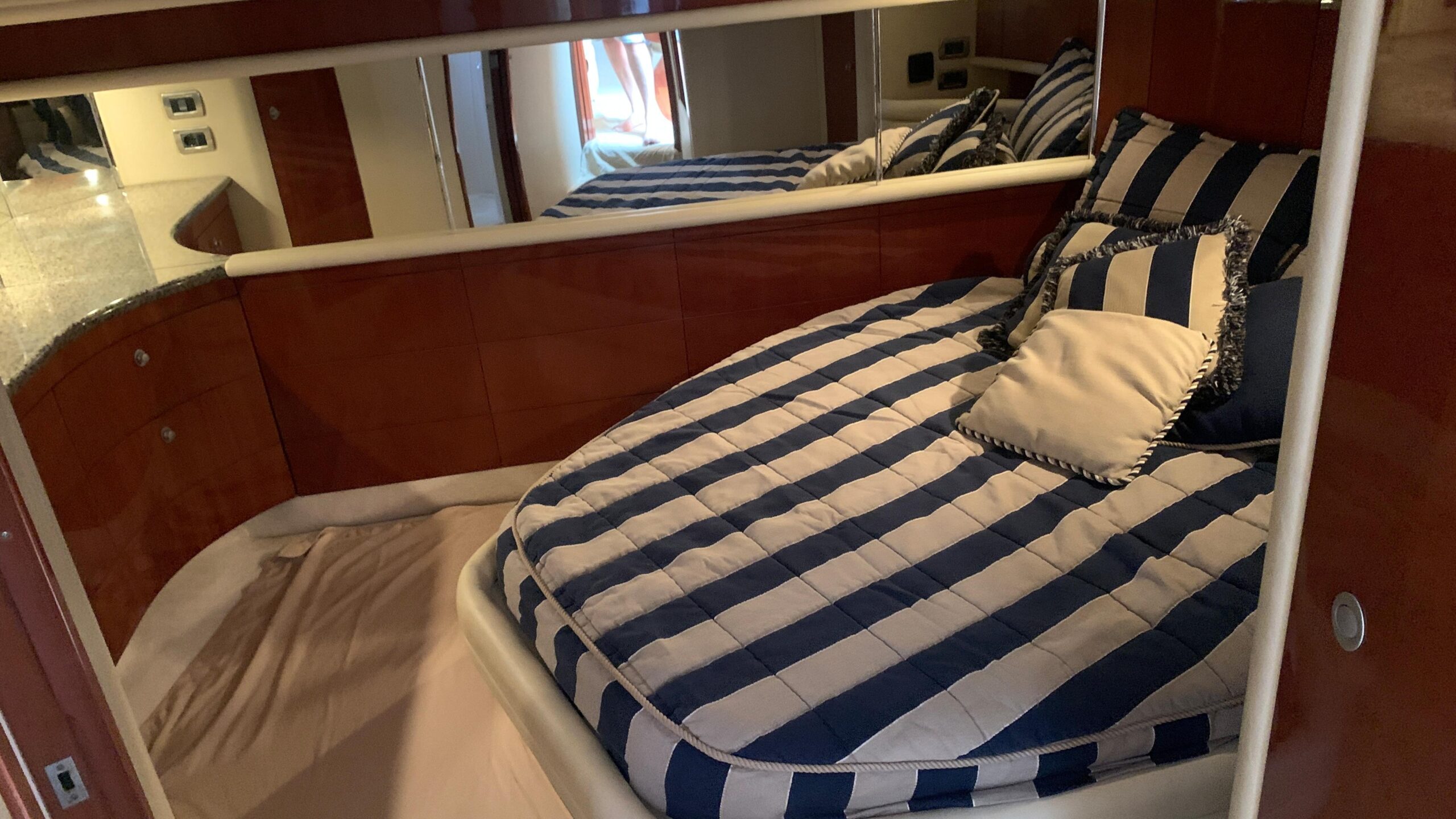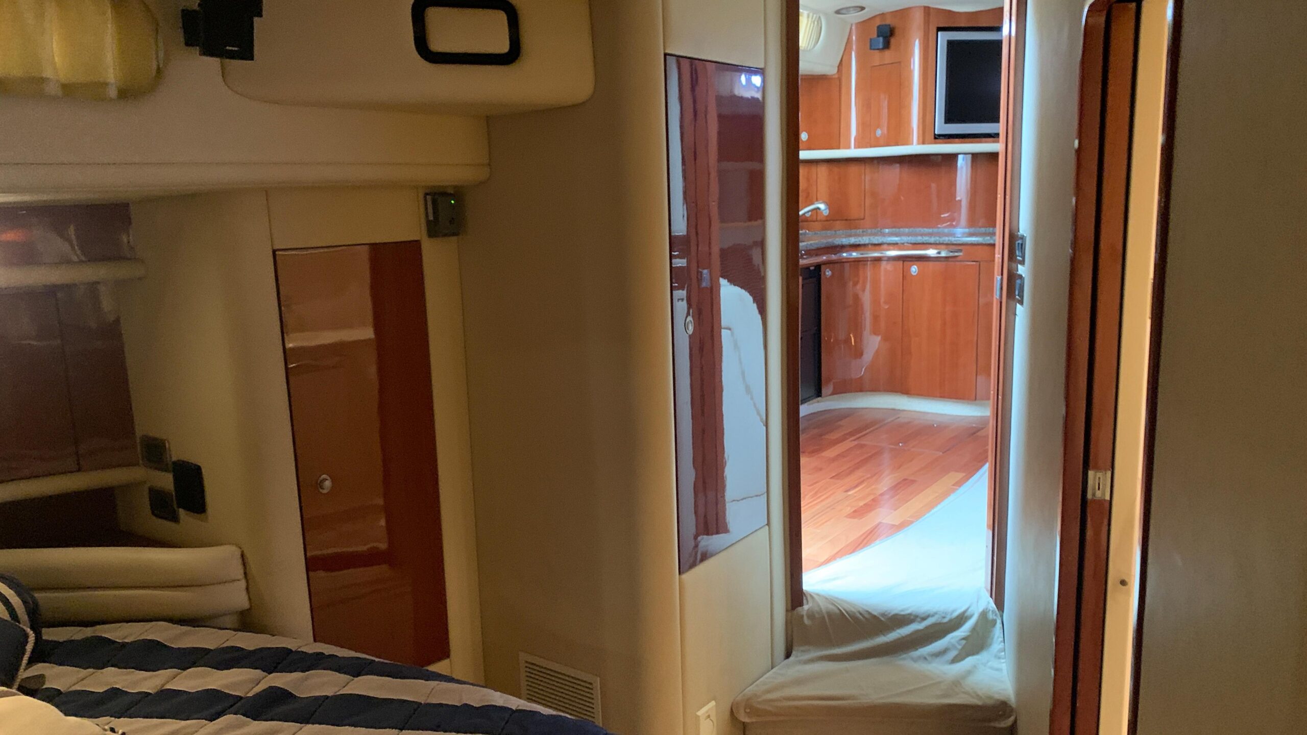 Finally, the secondary cabin has a very spacious double bed, 1 large wardrobe, 2 drawers under the bed and another 3 drawers and a smaller wardrobe on the side. Air conditioning and heating and sunroof window.