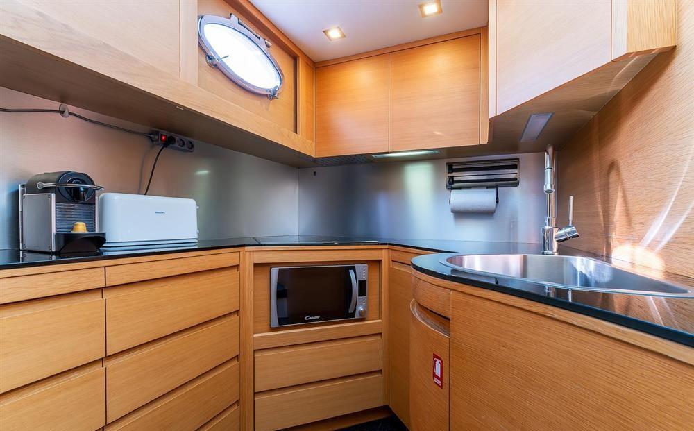 Swimming ladder, Hydraulic gangway, Teak cockpit, Teak side decks, Cockpit table