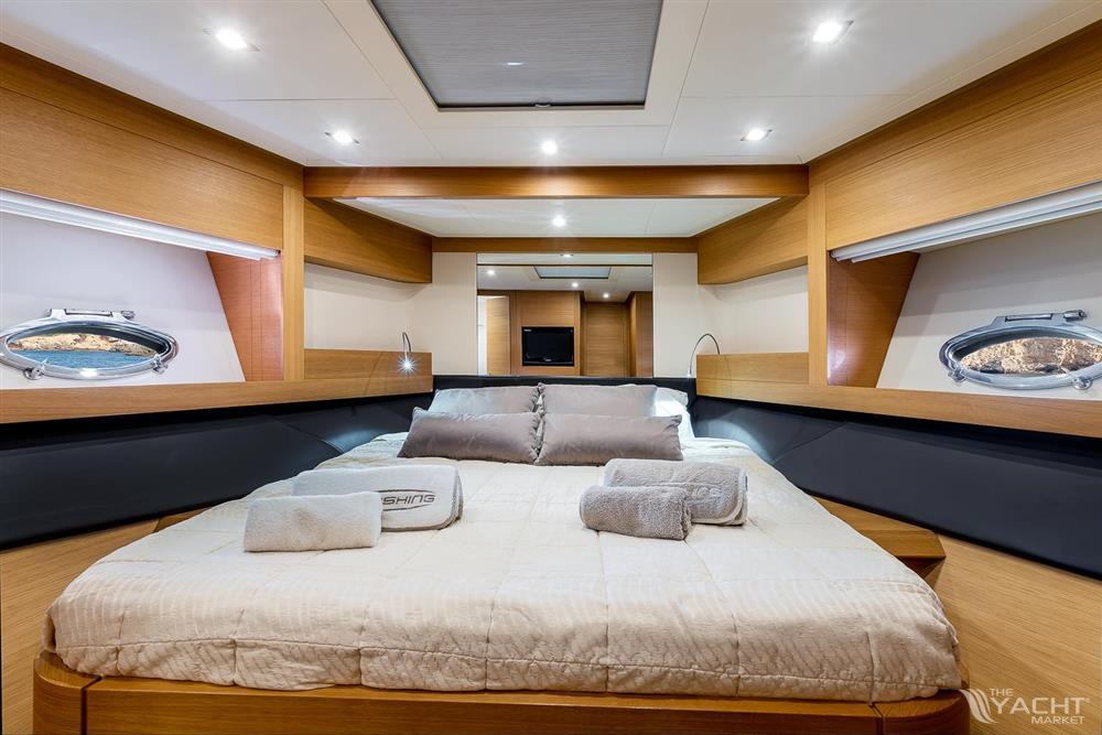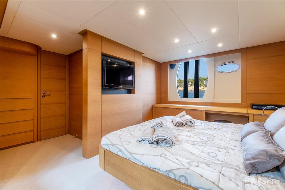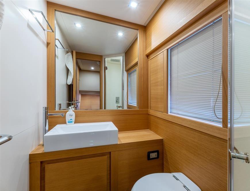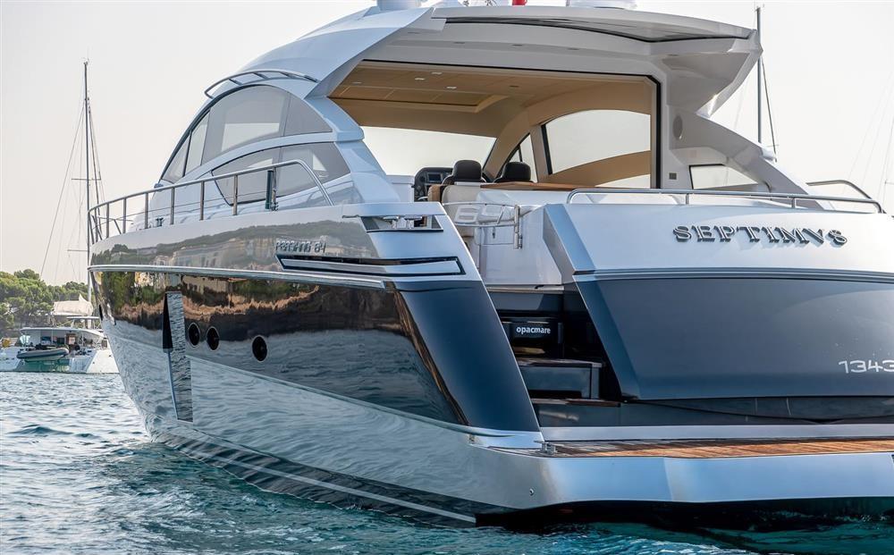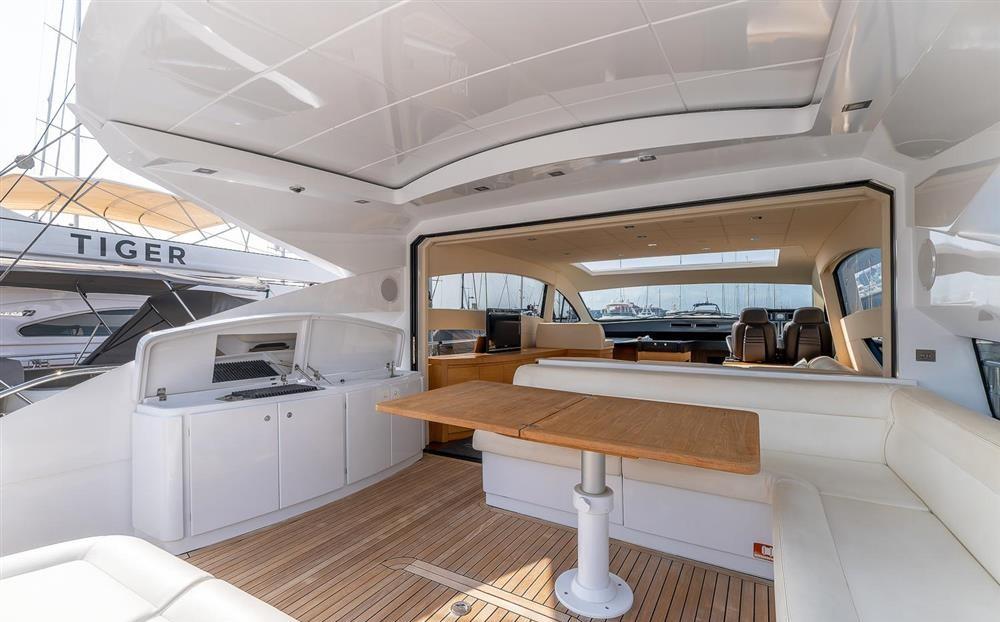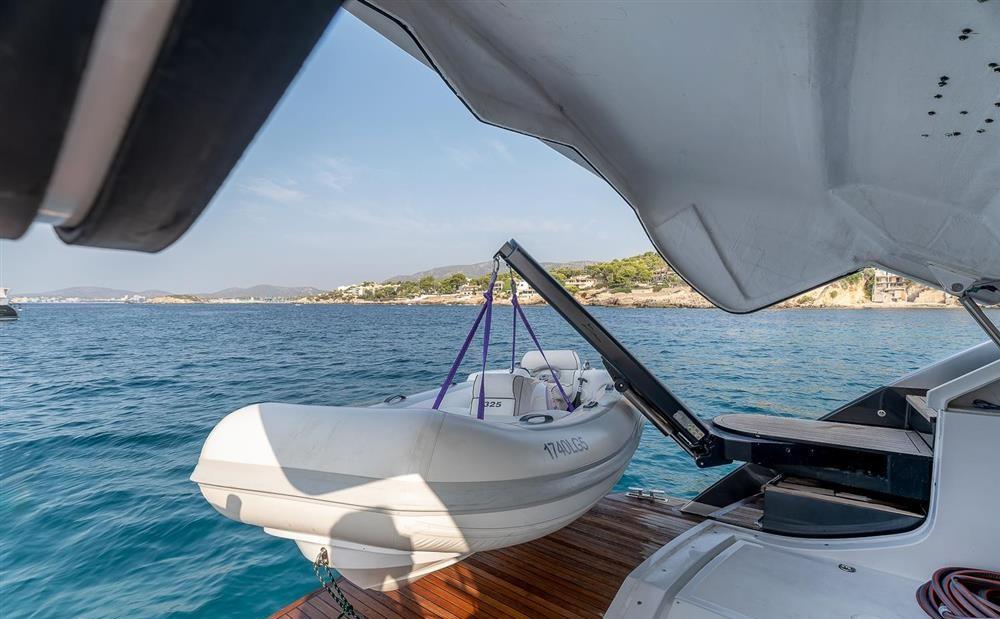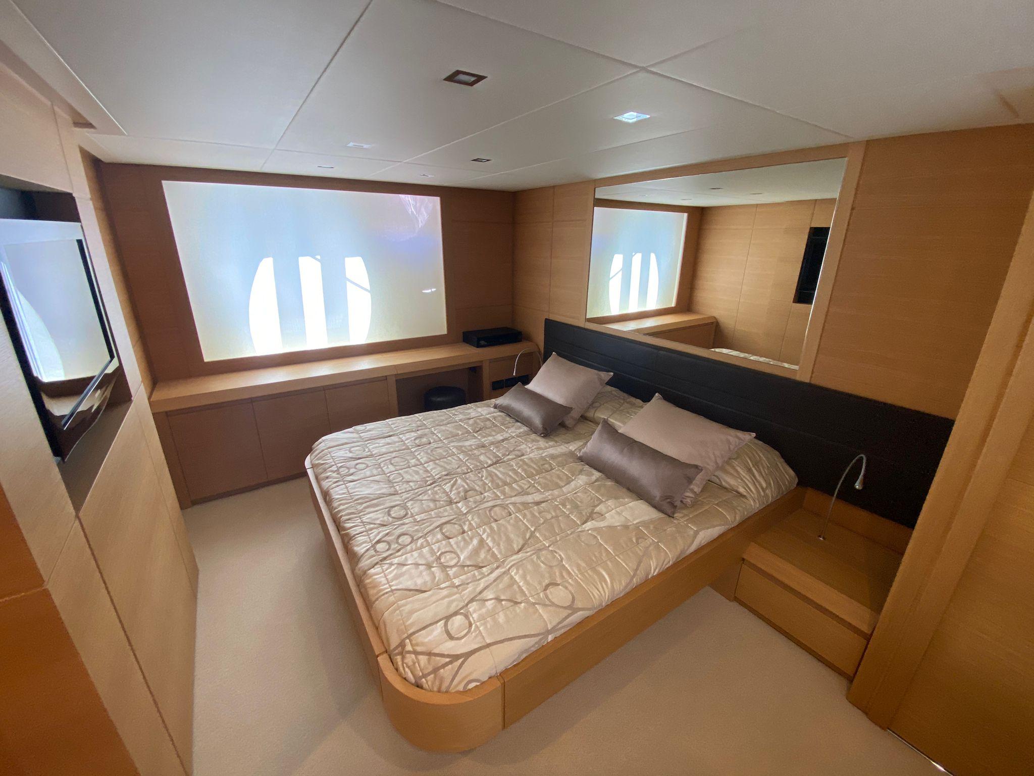 Accommodating up to six cabins and four bathrooms, this yacht offers ample space for relaxation and comfort. The hydraulic windlass enhances convenience, making anchoring effortless. The Pershing 80 is a perfect blend of elegance and performance, ready to create unforgettable memories on the open sea.