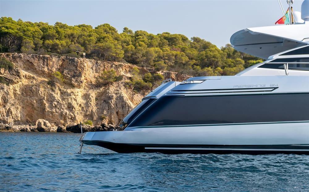 Immaculate Pershing 64 launched in 2010 equipped with twin MAN 1550 CRM engines and completely painted (May 2024).