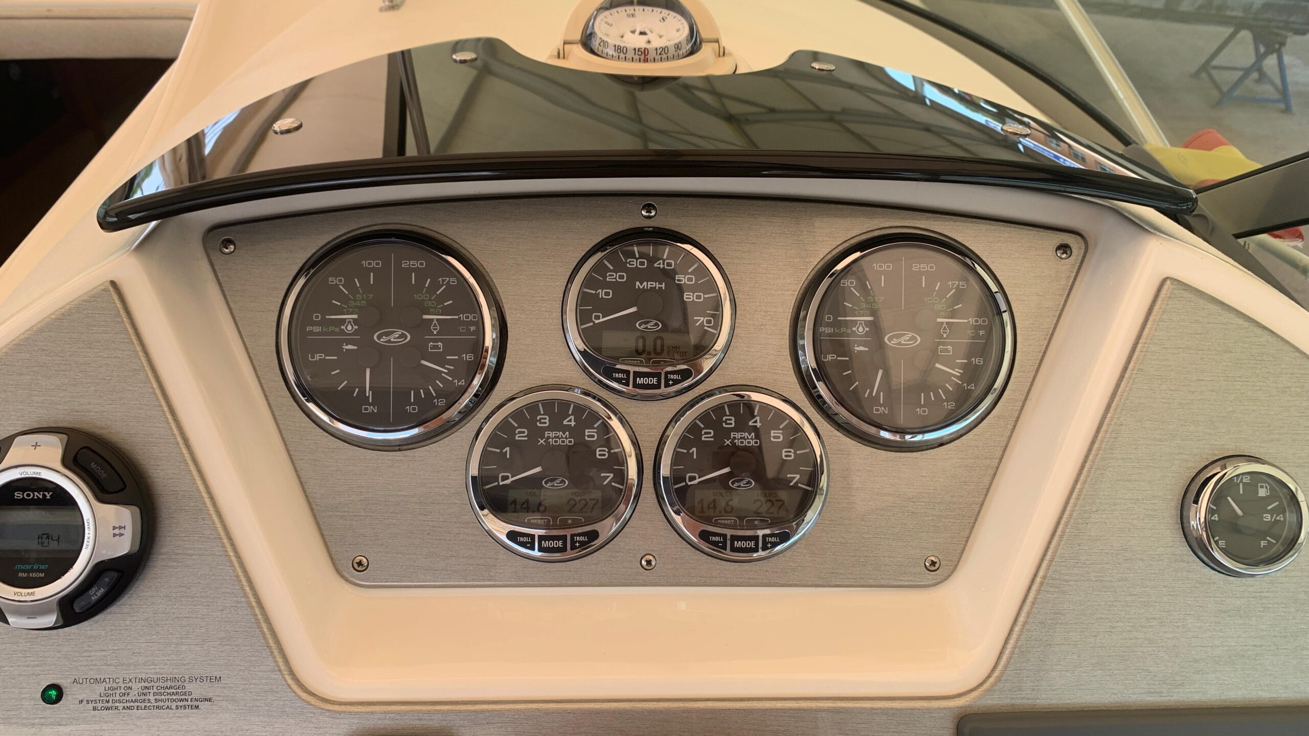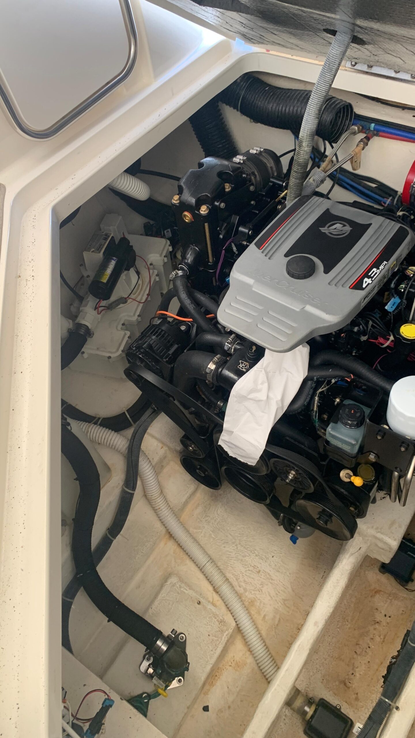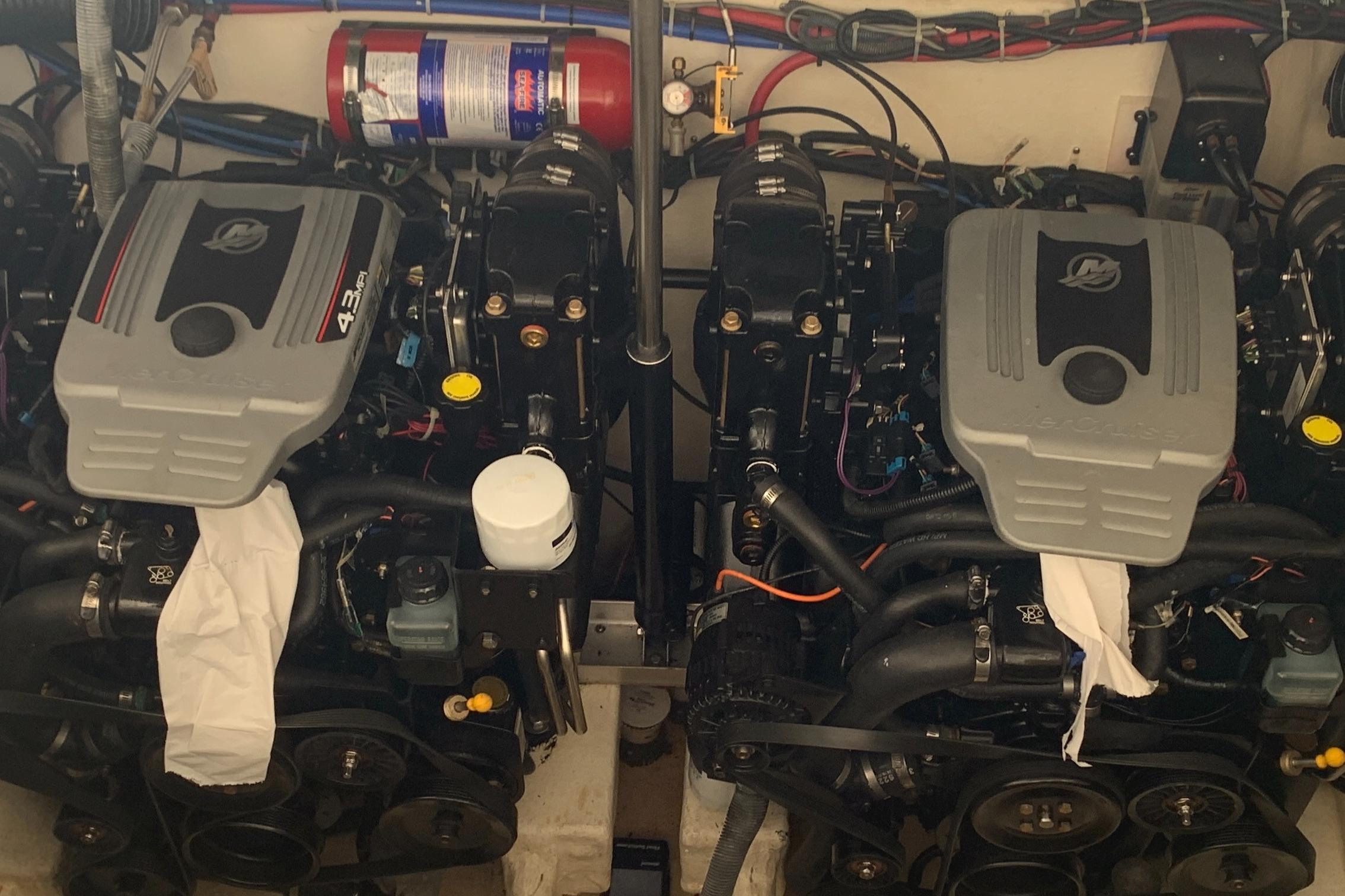 Equipped with 2 x 4.3L MPI V6 Mercruiser engines with 220HP each. It has 230 running hours.