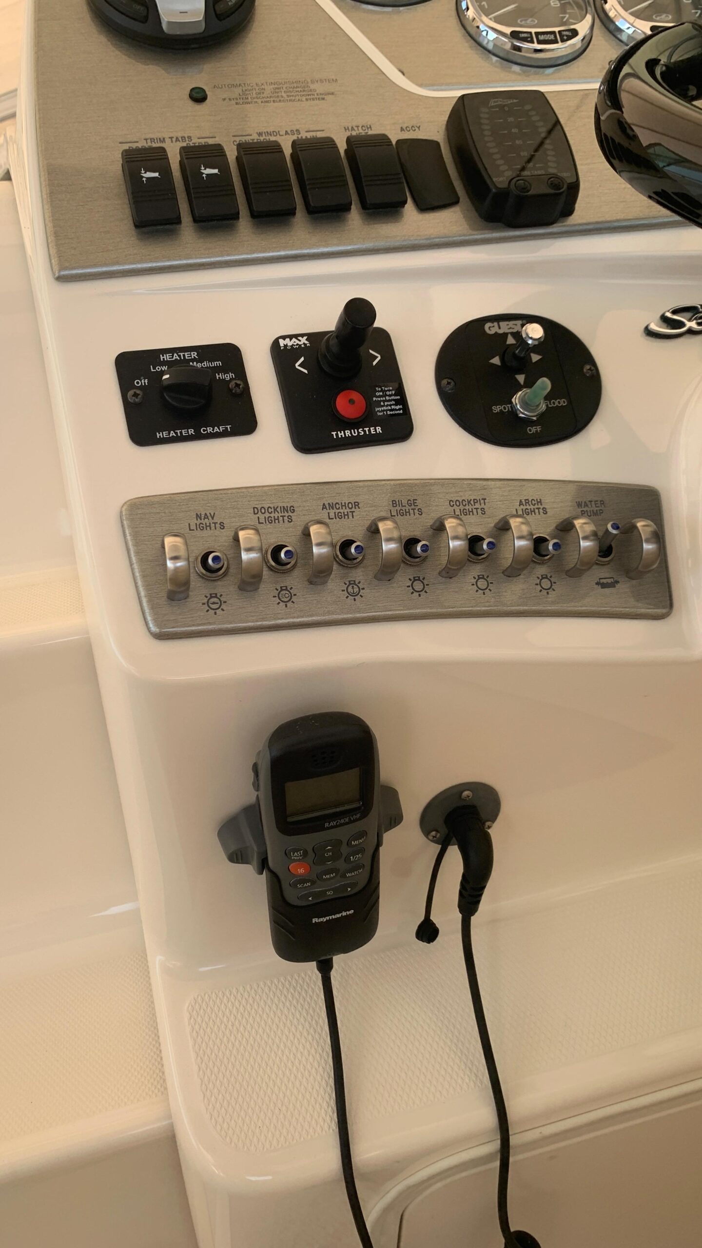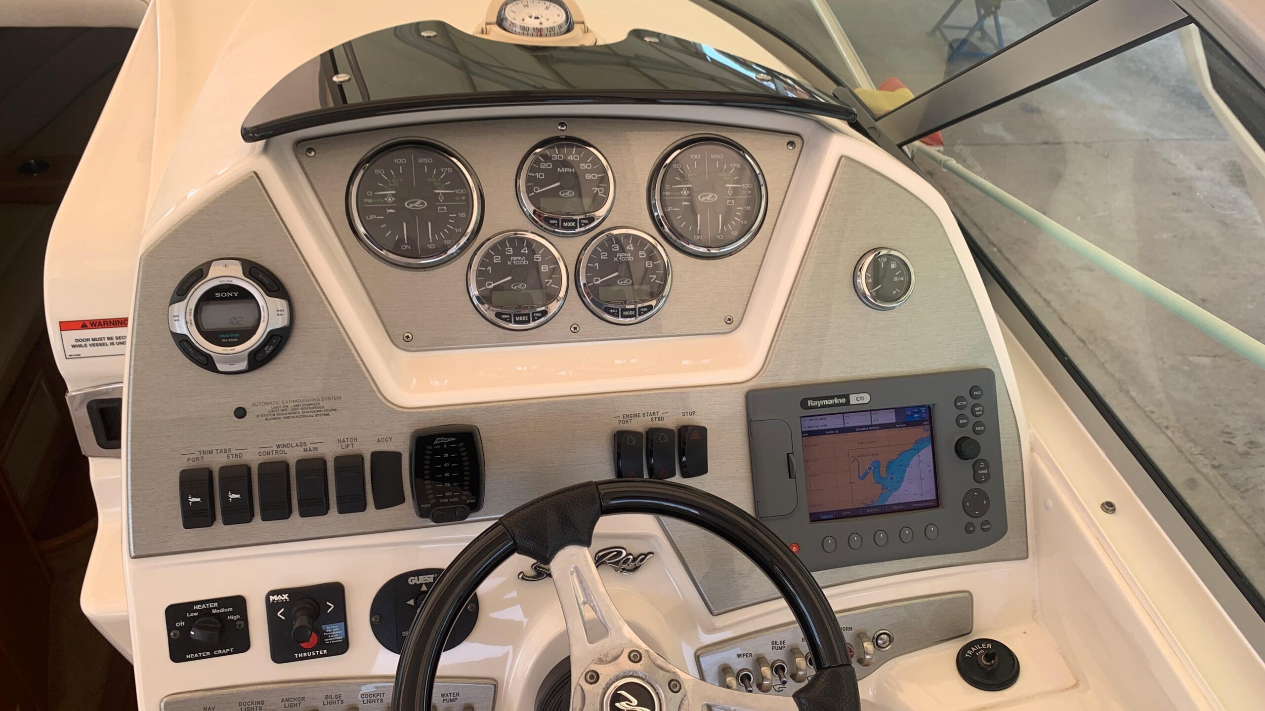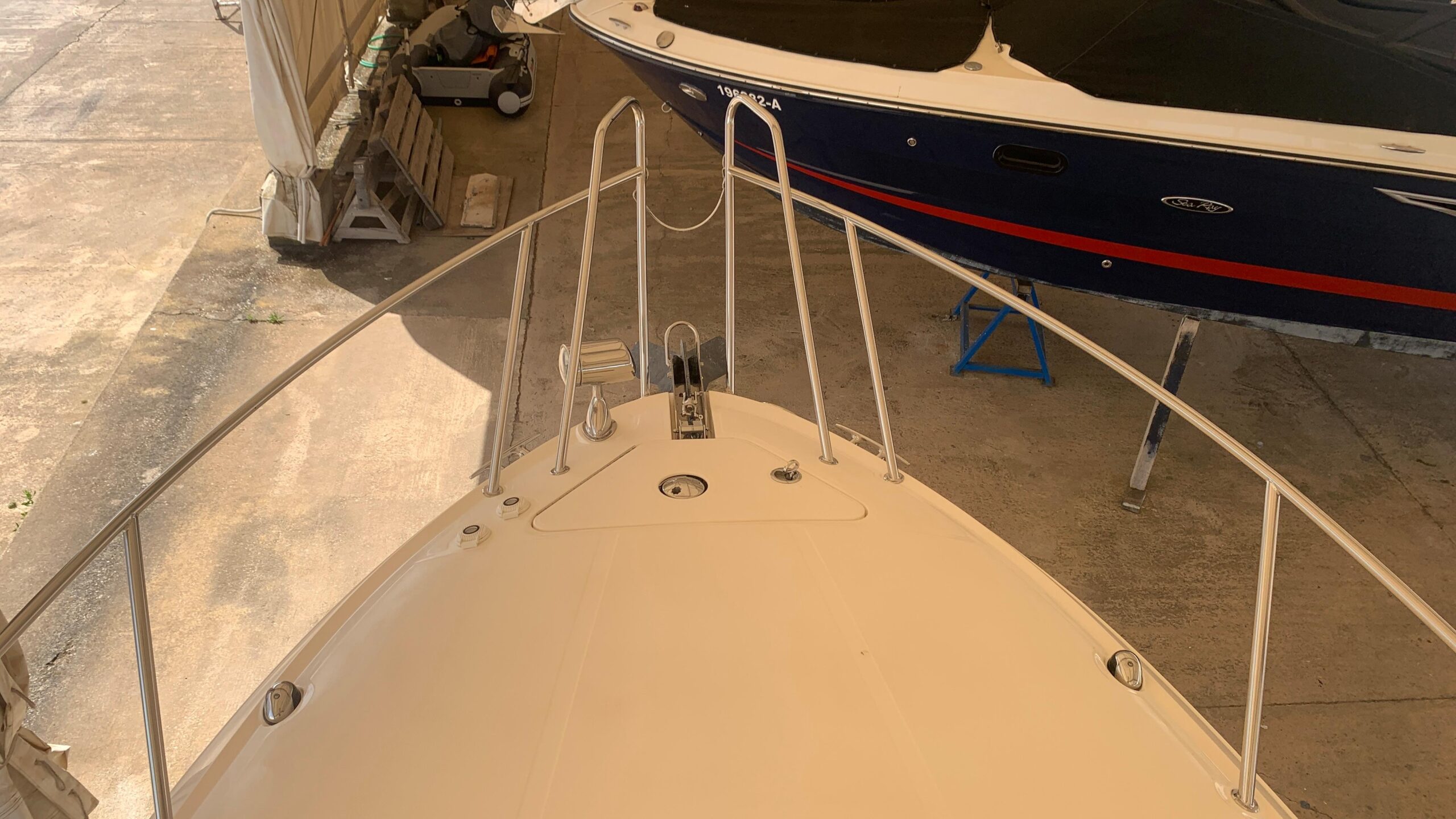 Fully equipped with: Air conditioning, Generator, bow thruster, trim tabs, Raymarine C70 color GPS/plotter, VHF, spotlight, stereo music system, cushions for the bow, electric anchor windlass, 2 refrigerators, alcohol/electric stove, etc.