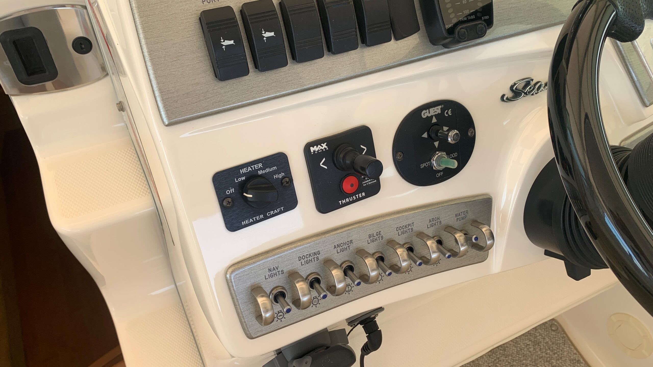 This yacht offers a particularly pleasant and quiet ride. The owner has invested in extra thick insulation in the engine room for extra fire safety and sound insulation.