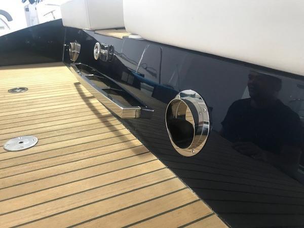In addition, the 1017 GT offers optional features such as a high-end audio system, underwater lighting, and custom color options for the hull and deck. Its standard features emphasize luxury and functionality with components such as a bow thruster, an electric windlass, and LED lighting throughout the boat.