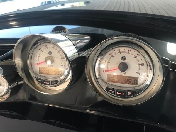 Additional features include a Sunbrella bimini top, an extended swim platform, and a 12V Clarion AM/FM/CD player with Sirius satellite radio.