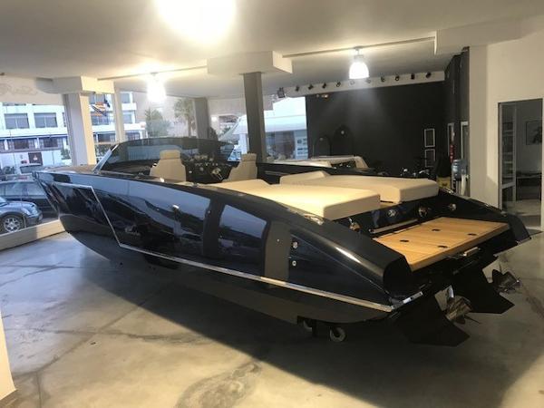 Dark blue Frauscher 1017 GT in immaculate condition, with very few hours of use. Always stored indoors when not in navigation and with complete maintenance performed each season by the official Mercruiser team at Marina Marbella Ibiza.