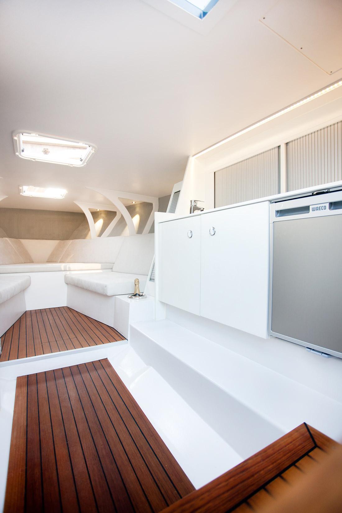 In addition, the 1017 GT offers options such as a high-end sound system, underwater lighting, and custom finishes on the hull and deck. Its standard equipment stands out for its functionality and luxury, including a bow thruster, electric windlass, and LED lighting throughout the boat.