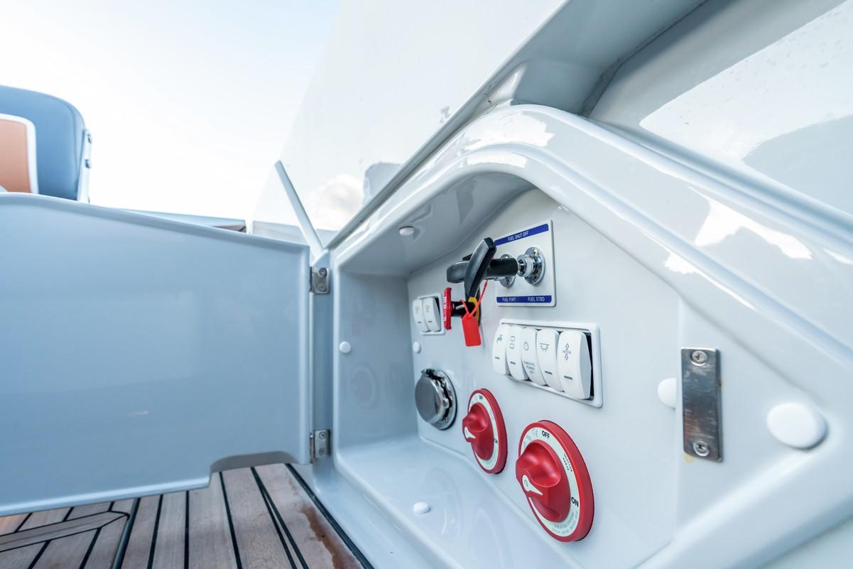 Its comfortable cockpit is perfect for socializing, as well as being equipped with a wet bar, a sofa that converts into a solarium area and a large teak bathing platform.