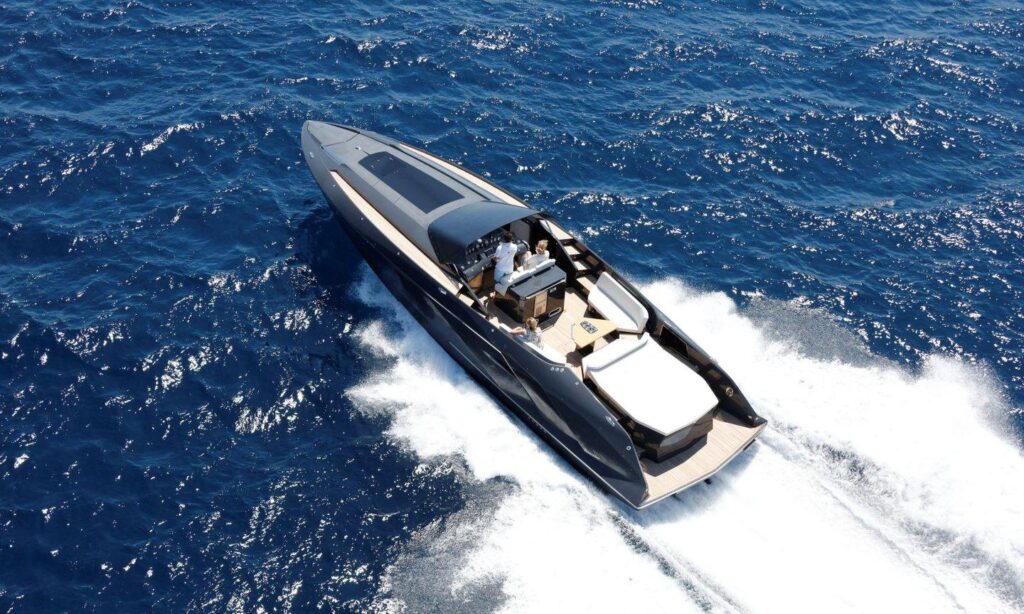 An extraordinary 46-foot offshore that completes Frauscher’s unique design with a perfect living space for a weekend trip. The 1414 Demon combines the key design DNA of Frauscher: flat bow with vertical stern, tinted and frameless windshield, carbon air intakes; with a unique sporty feel at the helm for a boat of that size.