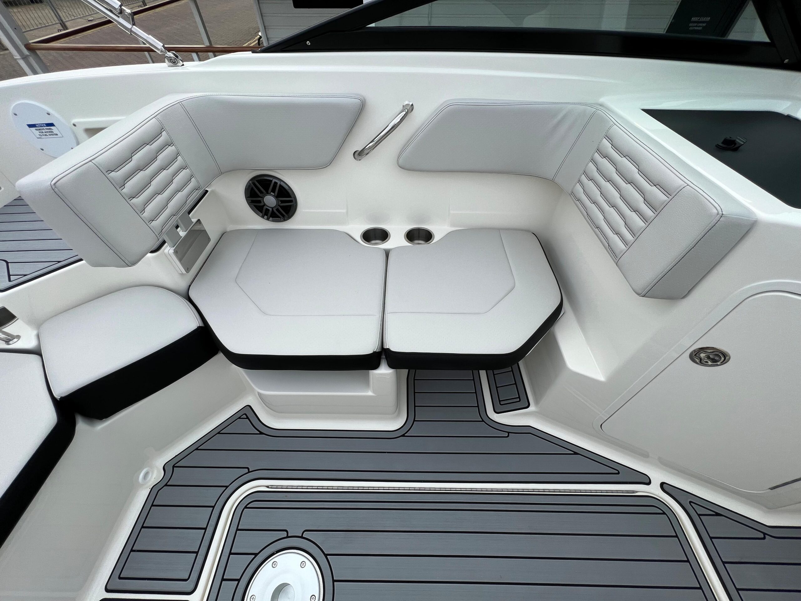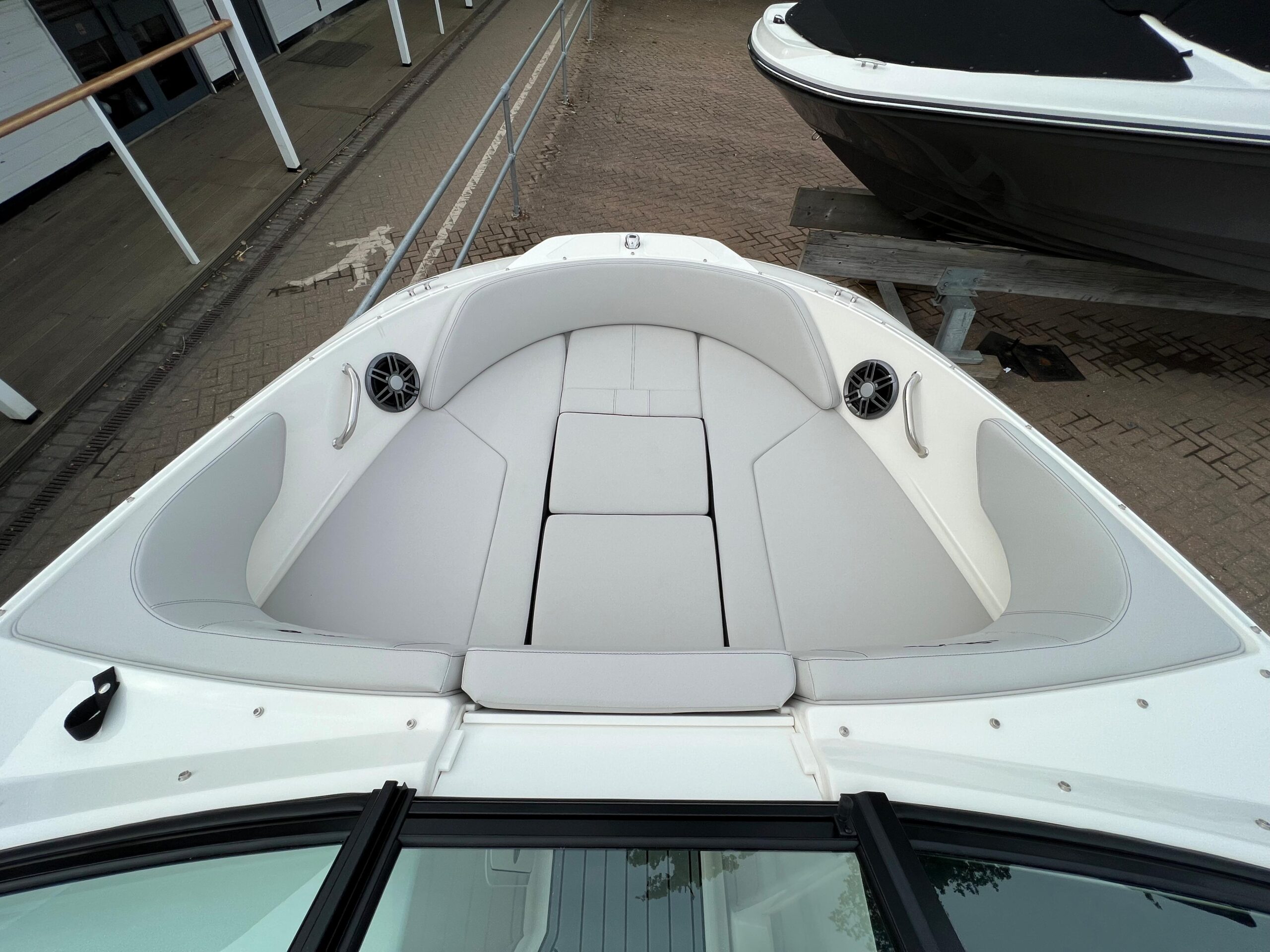 Sea Ray SPX 230 (2023), equipped with a MerCruiser 4.5L MPI DTS (250HP) and Bravo 3 sterndrive. Impressive boat with a very spacious cabin, with a toilet, it can comfortably accommodate up to 12 people. Steel gray hull with Stone interior, wakeboard tower, reversible seat on the port side, 9″ digital dashboard, SeaDek (gray) in the cockpit, SeaDek (gray) on the swim platform, stern shower, refrigerator and much more…