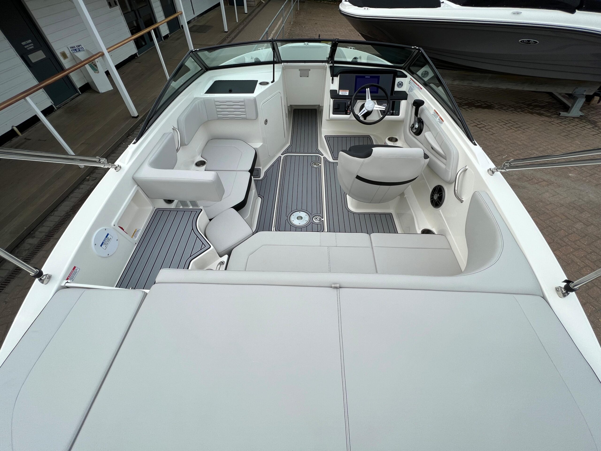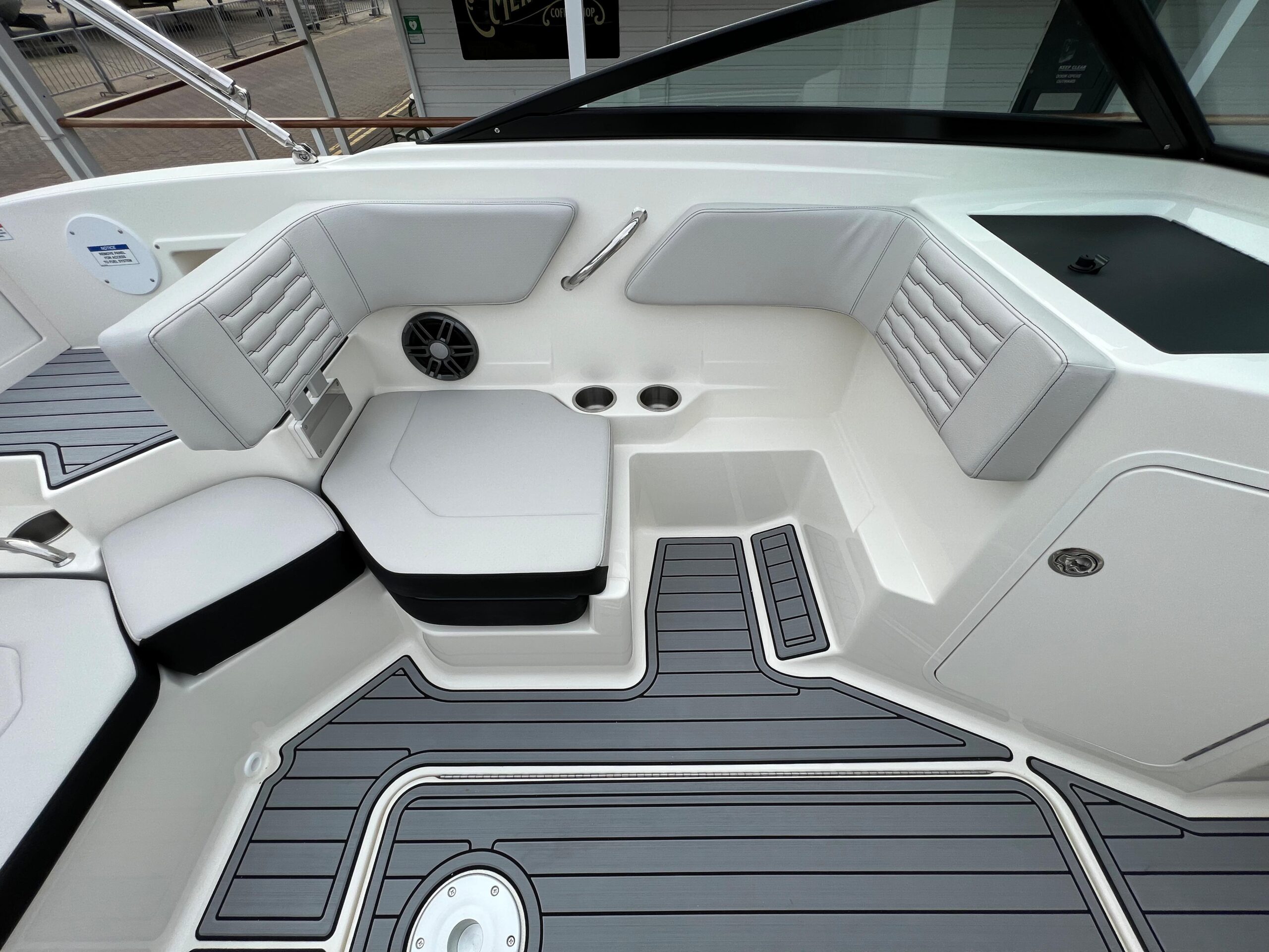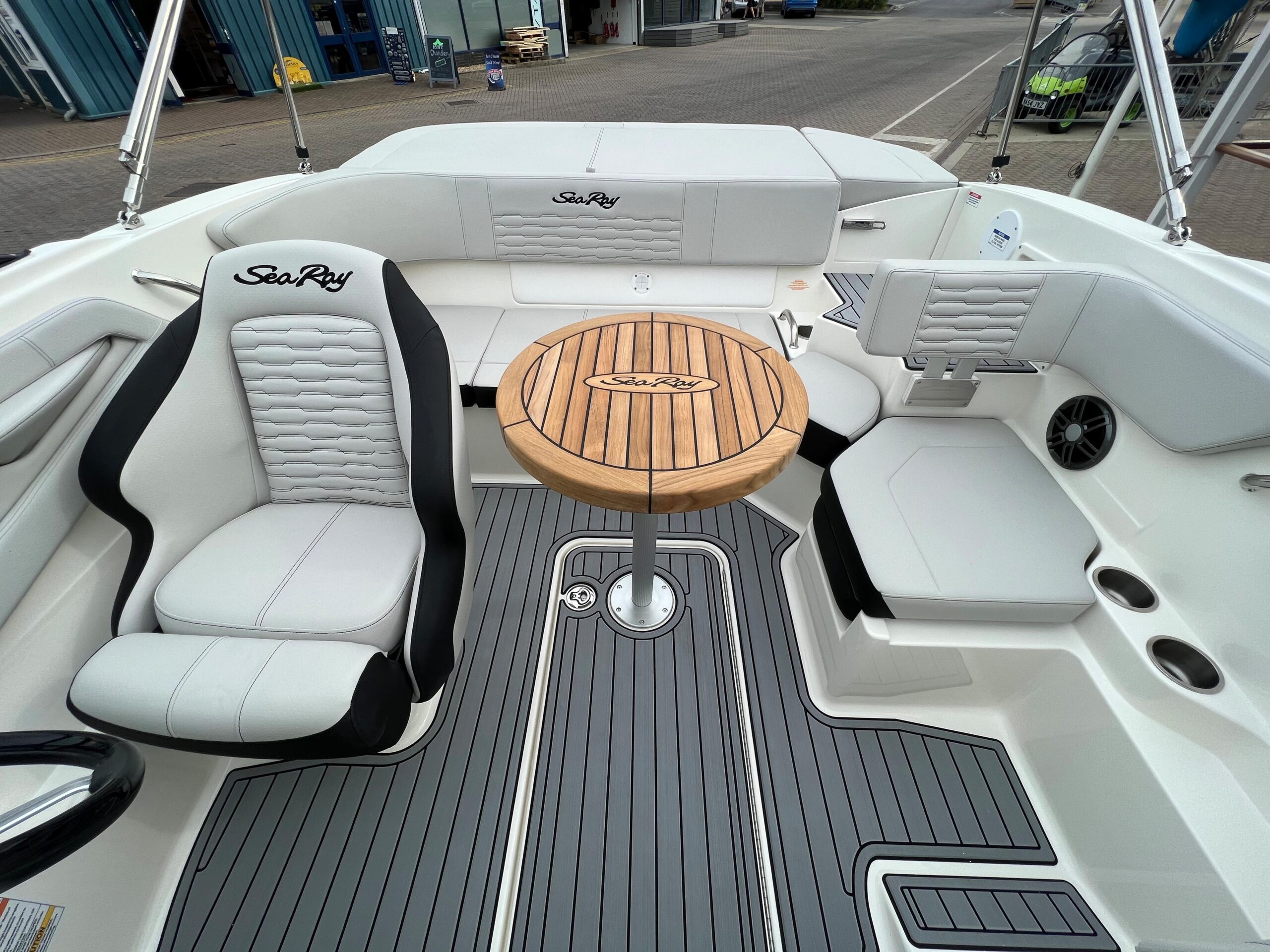 Sea Ray SPX 190 (2022) fitted with a single 4.5L MPI (200hp). She has the stunning steel grey hull, stone grey interior with SeaDek on the cockpit floor and bathing platform. She has a large spacious cockpit, seating in bow and cockpit for 10 and a teak table. An ideal tow boat getting you on the water now. Specification includes: Bimini top, cockpit cover & Tonneau cover, Mooring cover, 9″ Digital Dash, Air compressor, Fenders and Lines.