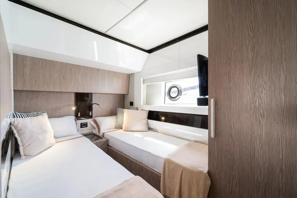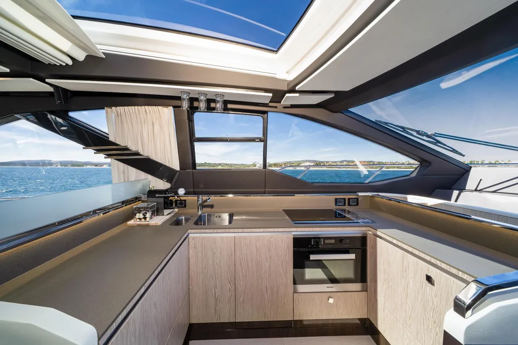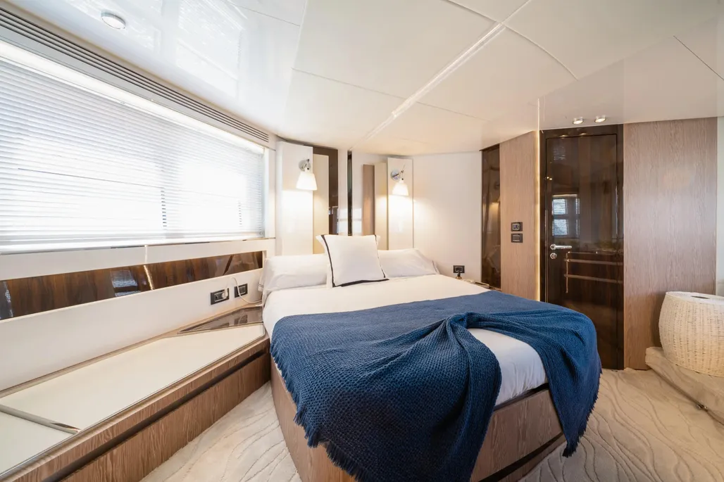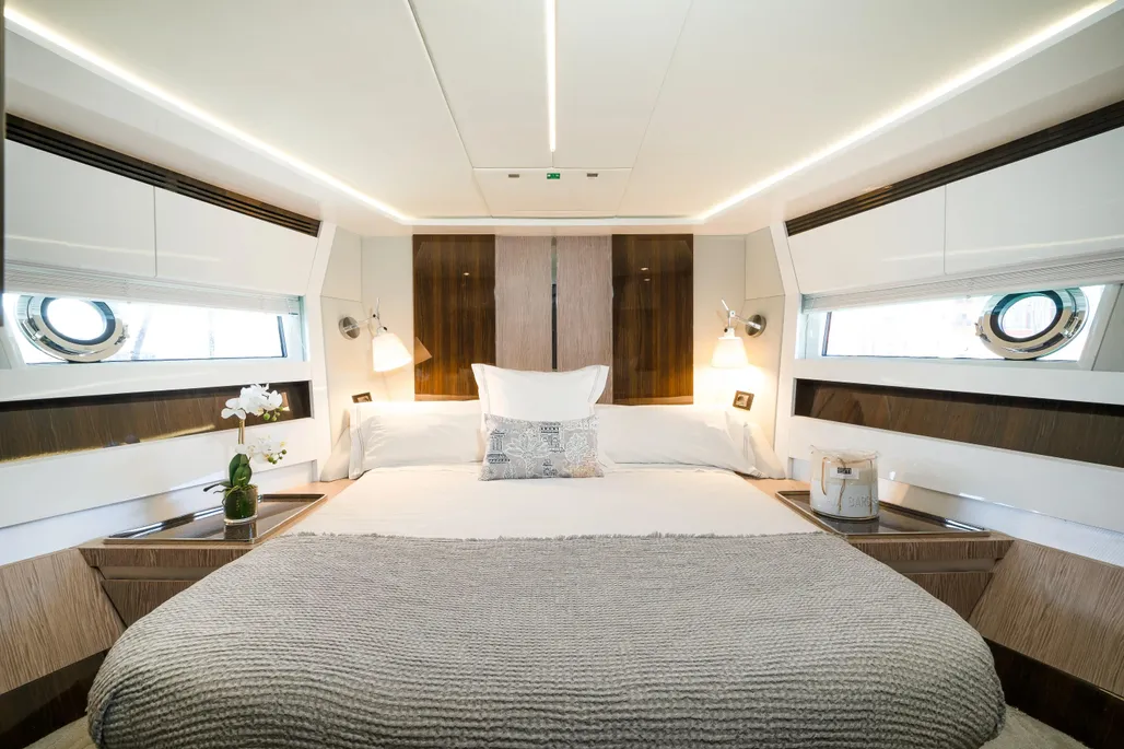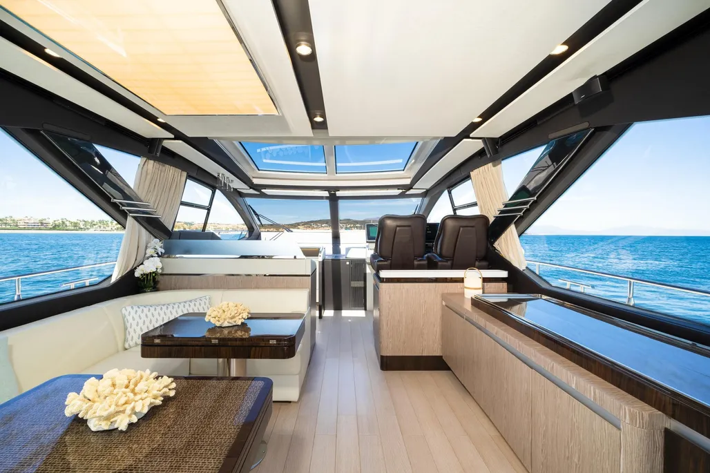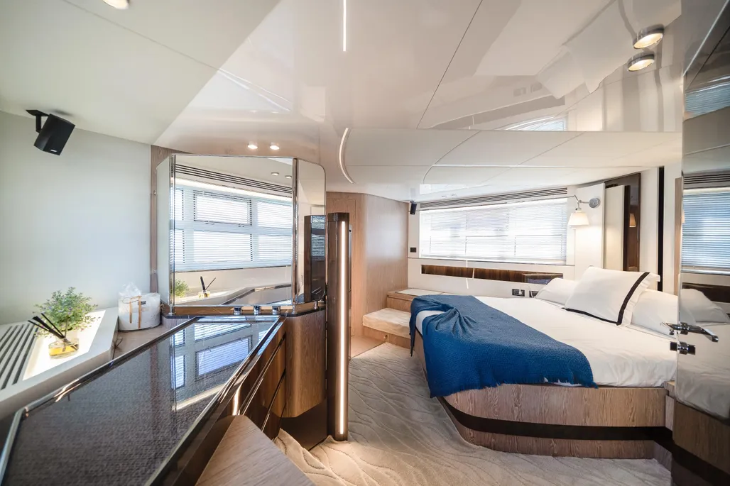 The Azimut S7 is a spectacular sports yacht that offers a perfect combination of elegant design, eco-friendly engineering, and exceptional performance. This 21.68-meter sports yacht is one of the most advanced in its class and joins the shipyard’s growing range of low-emission yachts. Its sharp exterior design, by Alberto Mancini, is defined by a seamless glazing arch that runs along the superstructure, ensuring that its generous interiors are filled with as much natural light as possible. Yachtique designed its warm interiors, and the company’s expertise is evident in every aspect of the yacht’s design.