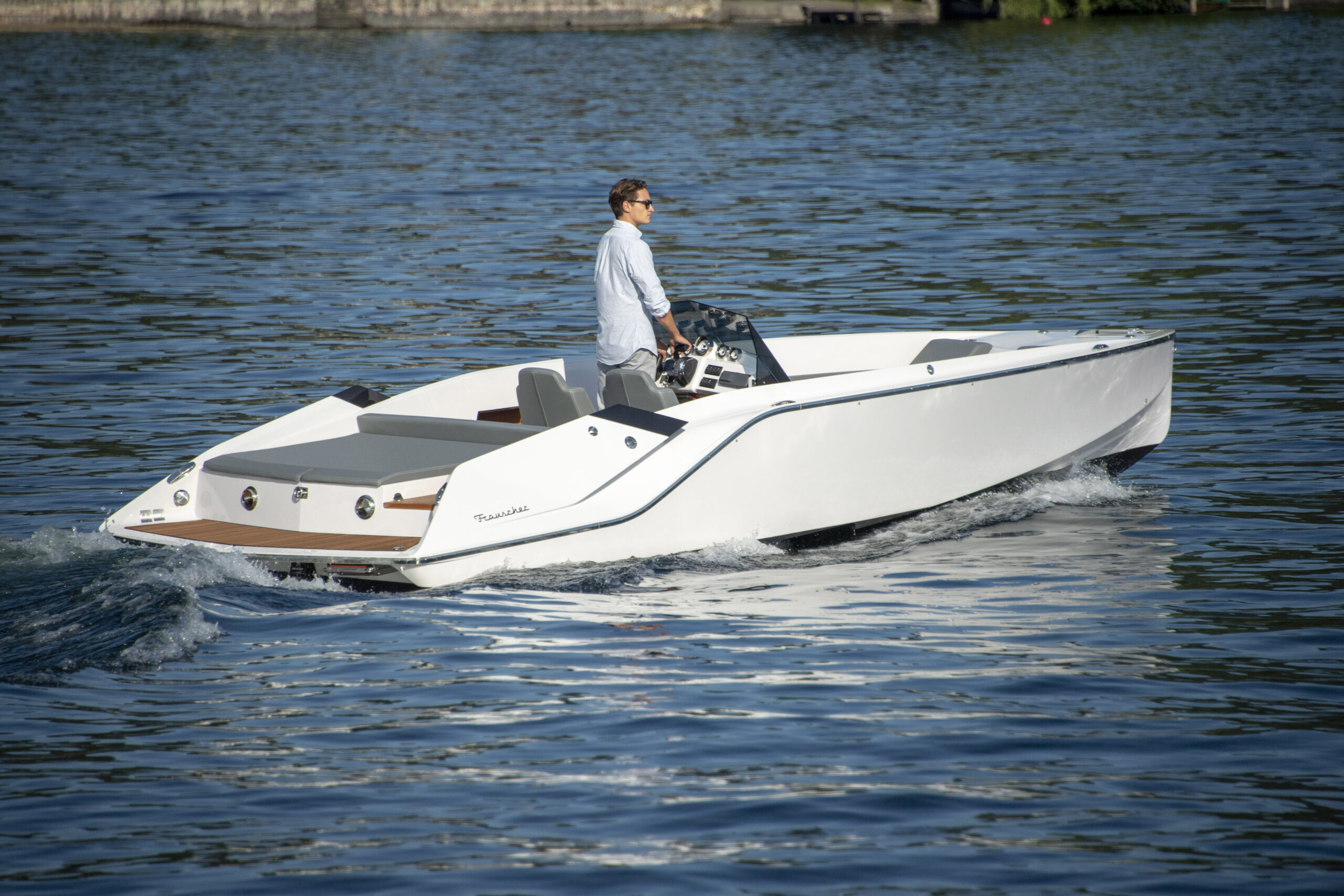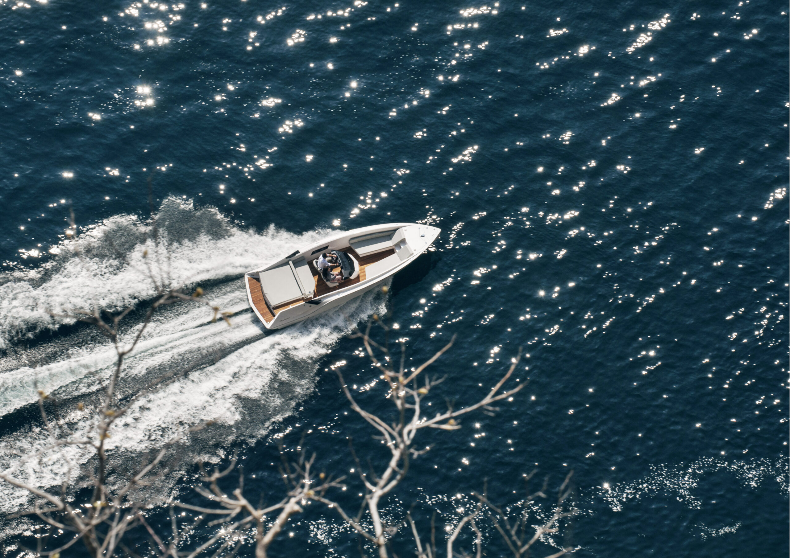 Derived from the closed bow 747 Mirage, the 747 Mirage Air is a very beautiful center console boat with an impressive style. Its extraordinary design also delights customers with plenty of space, a perfect fit and finish, and a very flexible layout: you can switch from a sunbathing area to a shaded seating area in a matter of seconds. All this combined with the stepped hull design, which promises exciting driving capabilities and extremely high cornering speeds.