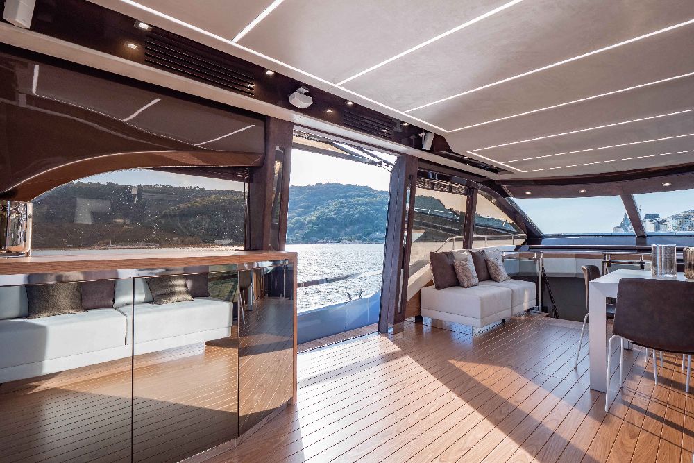 Yacht FLY 68 Gullwing, Flybridge Line: A revolutionary new challenge! Come and discover the new flagship from Sessa Marine Yacht, a vessel with a strong personality and unique style that will redefine the 21-meter yacht segment.