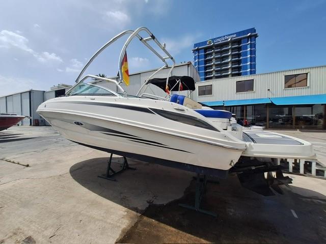 Sea Ray SPX 190 (2022) fitted with a single 4.5L MPI (200hp). She has the stunning steel grey hull, stone grey interior with SeaDek on the cockpit floor and bathing platform. She has a large spacious cockpit, seating in bow and cockpit for 10 and a teak table. An ideal tow boat getting you on the water now. Specification includes: Bimini top, cockpit cover & Tonneau cover, Mooring cover, 9″ Digital Dash, Air compressor, Fenders and Lines.