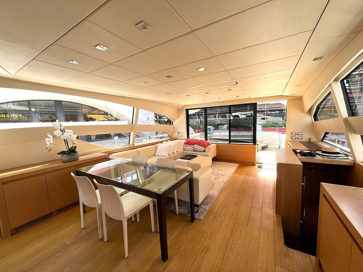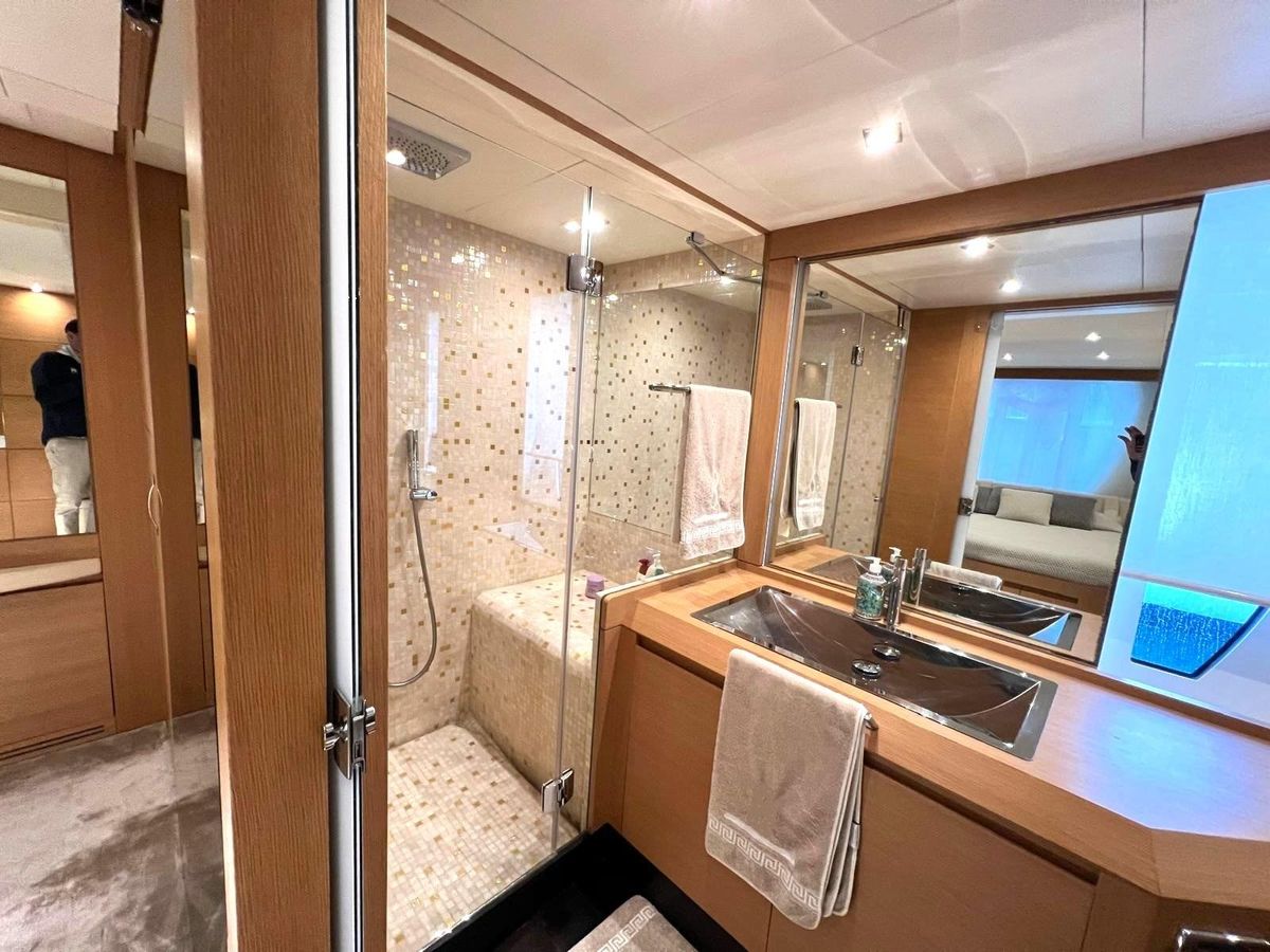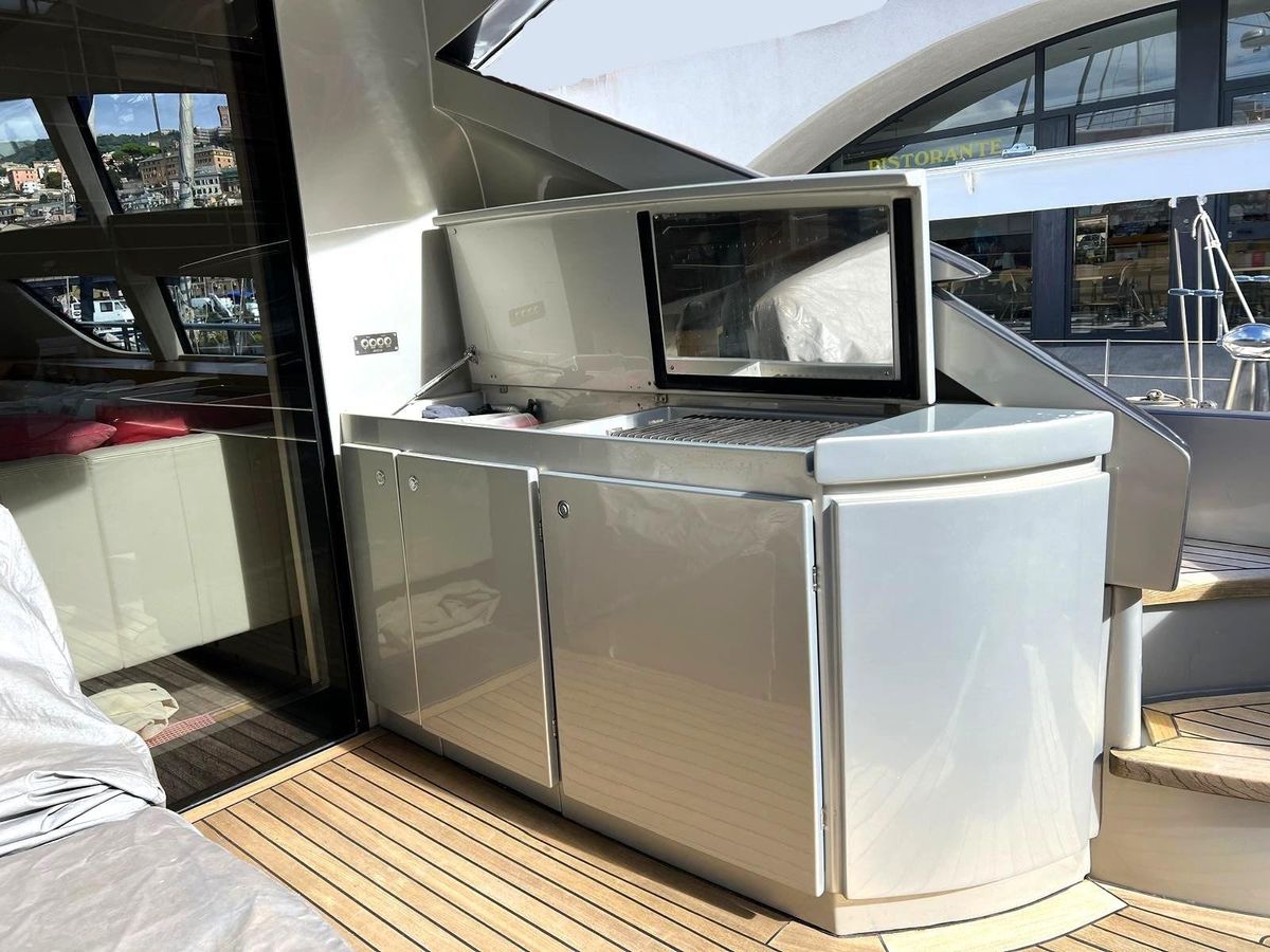 Accommodating up to six cabins and four bathrooms, this yacht offers ample space for relaxation and comfort. The hydraulic windlass enhances convenience, making anchoring effortless. The Pershing 80 is a perfect blend of elegance and performance, ready to create unforgettable memories on the open sea.