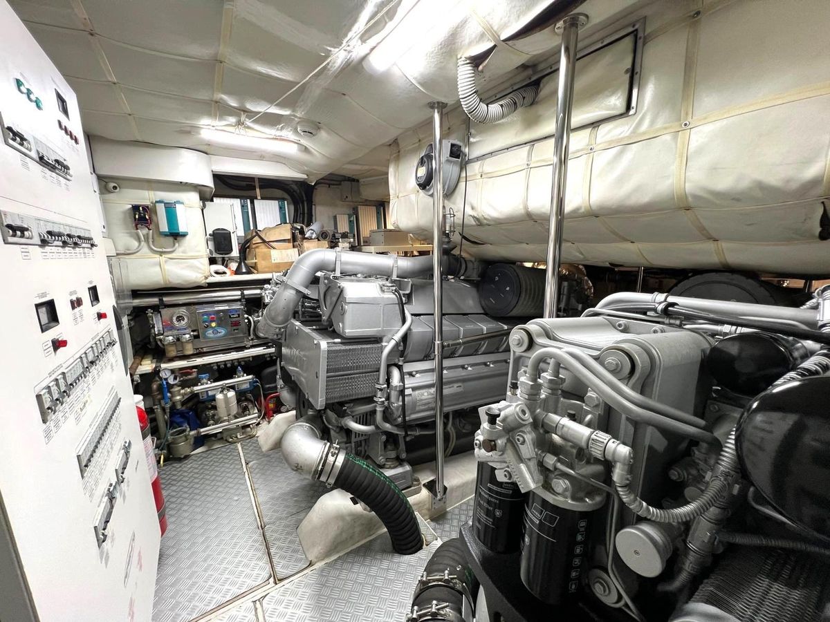 Powered by twin MTU 16V 2000 M91 inboard engines, each delivering an exhilarating 2435 horsepower, the Pershing 80 is equipped with surface drives for exceptional maneuverability. With only 1350 hours of use, these engines promise reliability and power for your adventures.