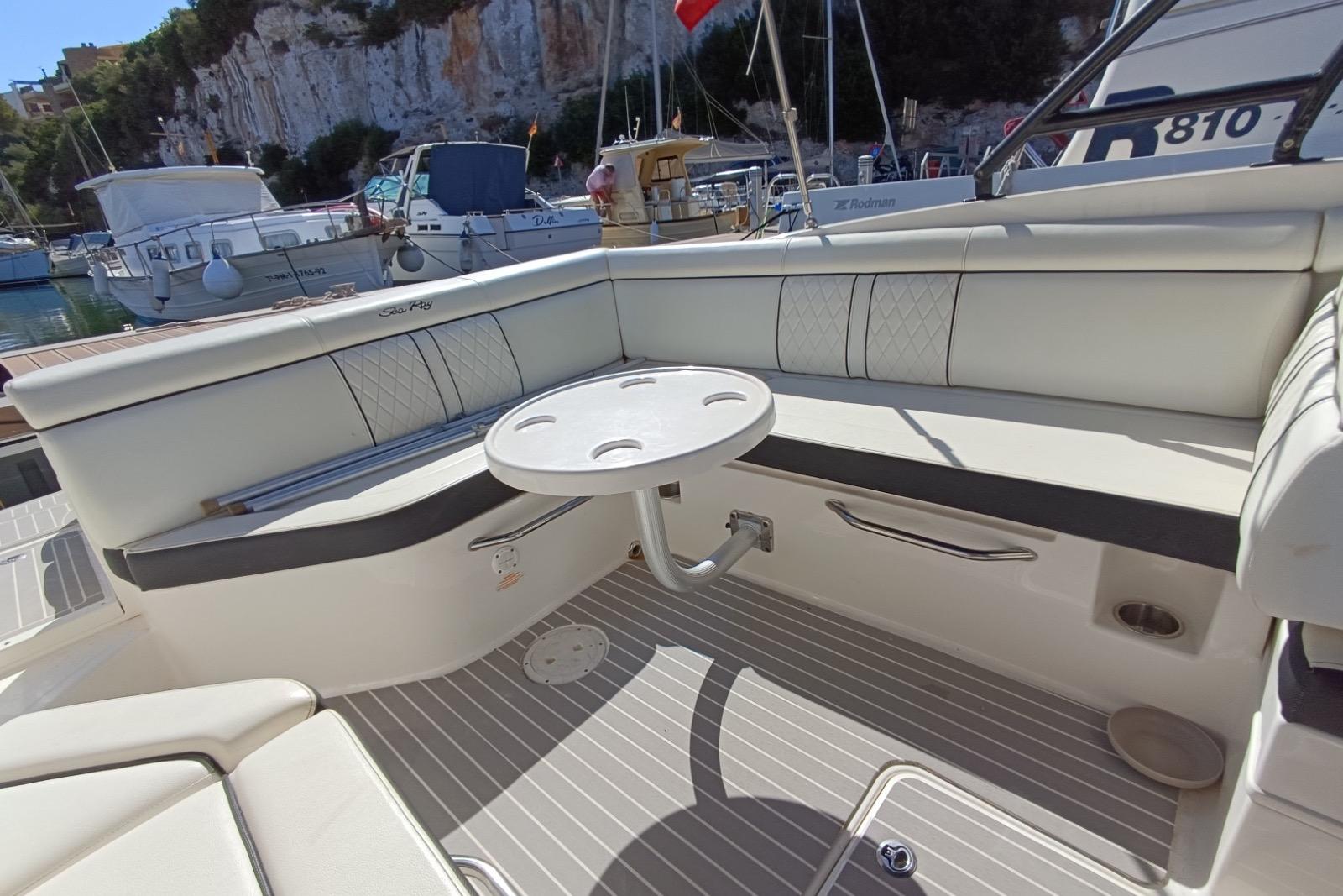 Very well equipped with air conditioning/heating inside and outside, generator with 110 hours, autopilot, VHF, GPS/Plotter with digital instrument panel, upgraded audio system throughout the boat, electric aft awning and bow awning with stainless steel masts, bow thruster, sundeck in the stern with extended platform, refrigerator in the cockpit with grill, interior refrigerator and table convertible into a bed, etc.