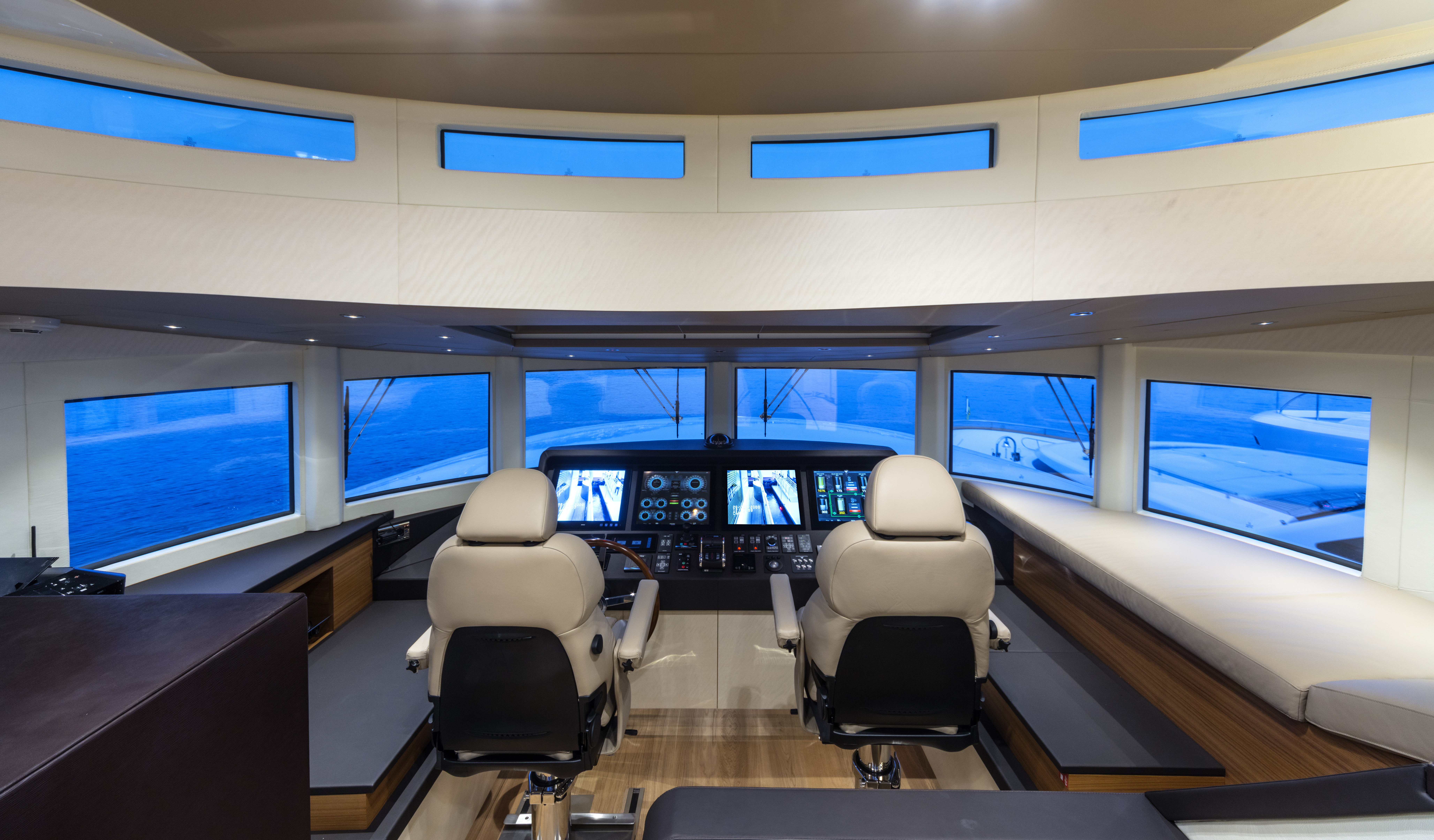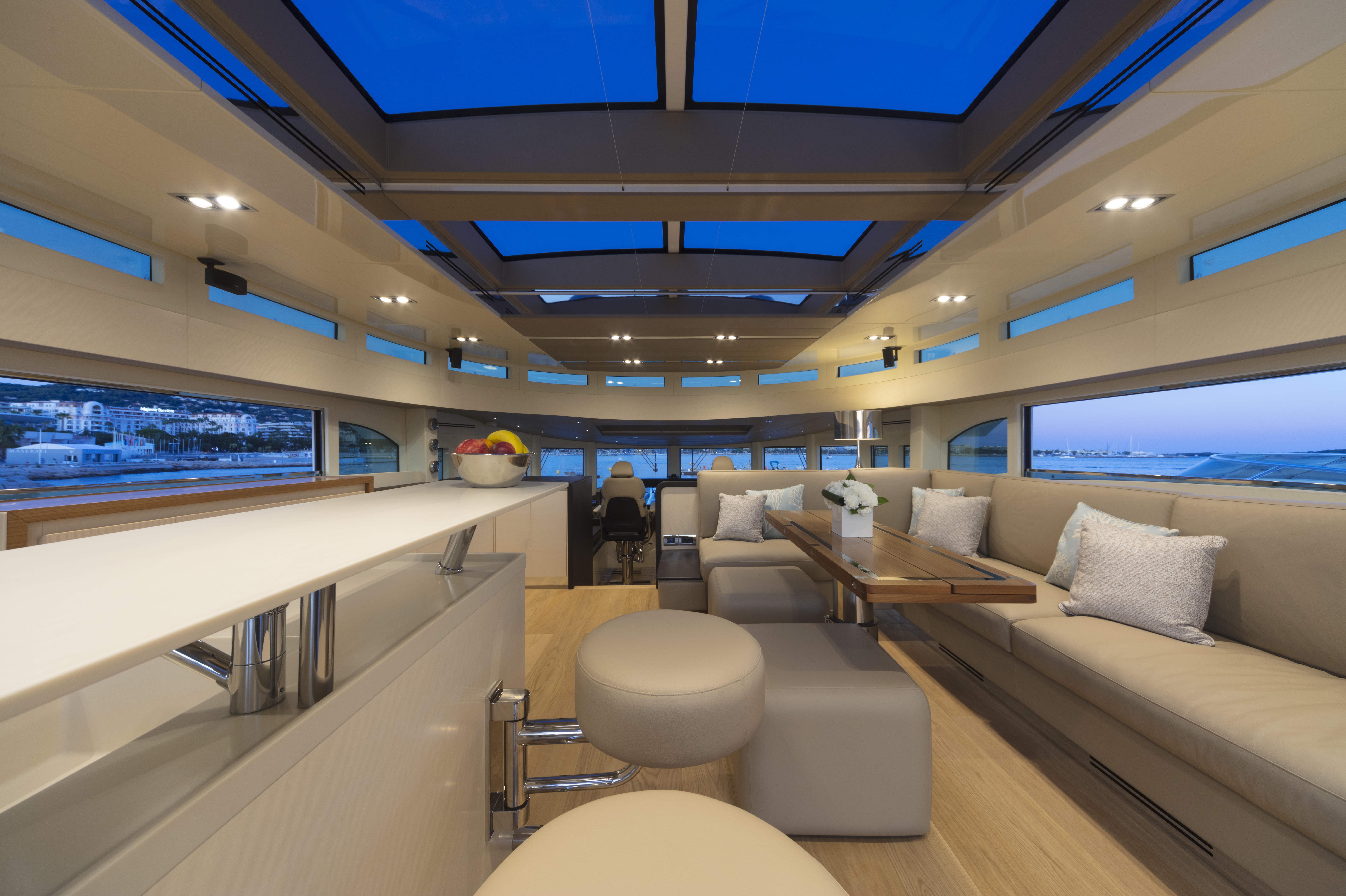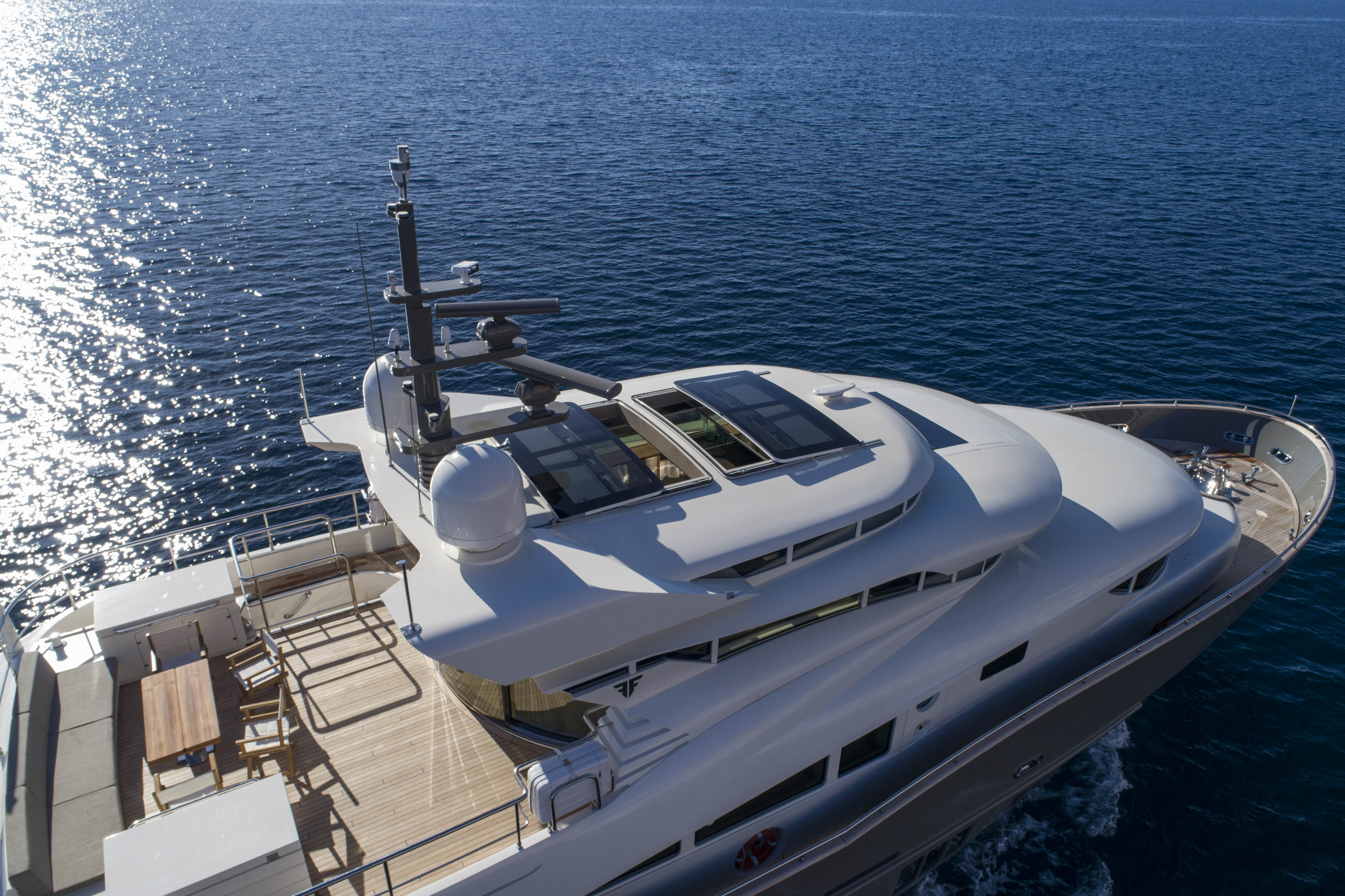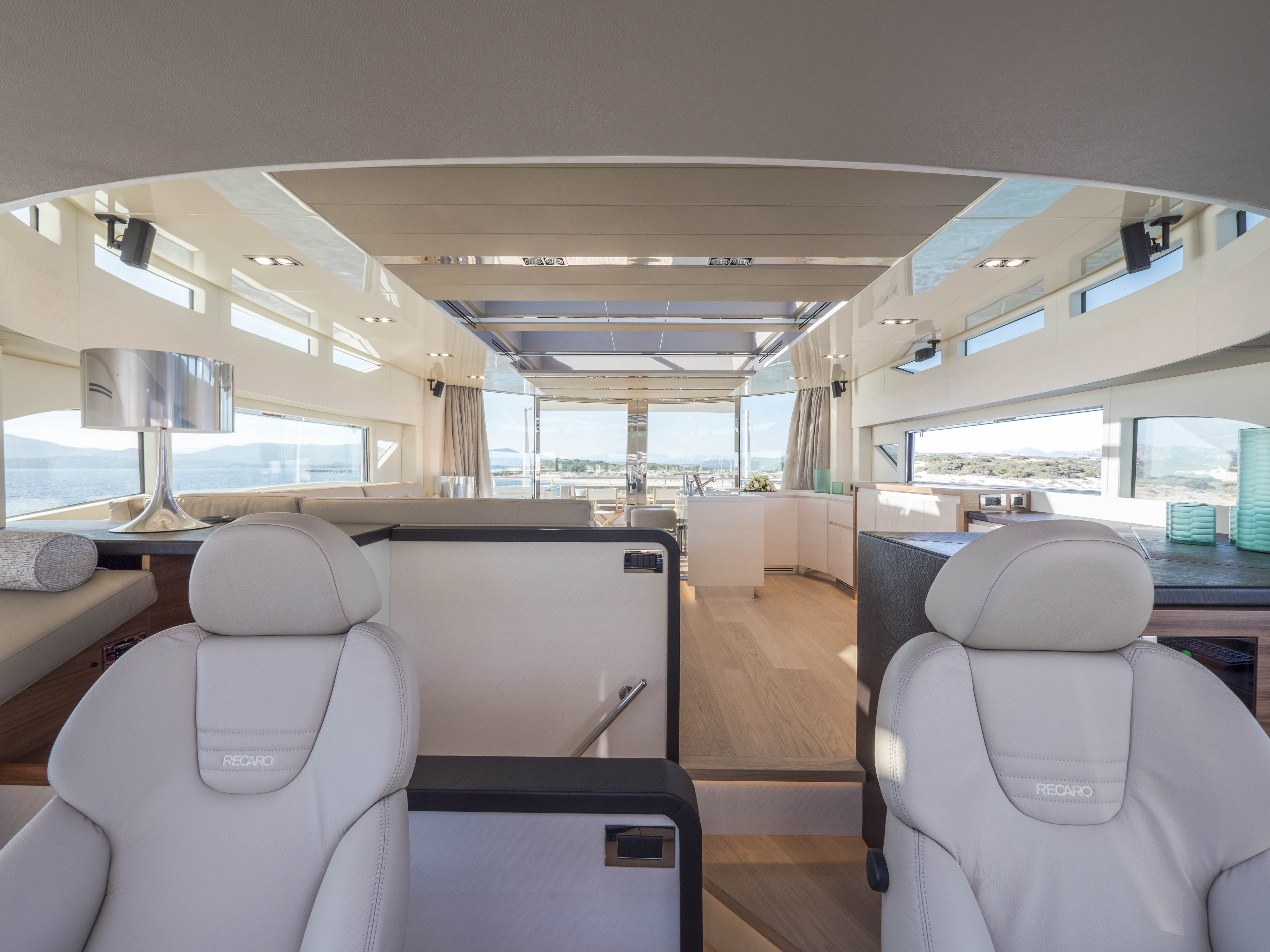 FILIPPETTI NAVETTA 26 - CONVERTIBLE: A MASTERPIECE TO SAIL THE OCEAN Filippetti Navetta 26: the ideal yacht to sail throughout the year Sailing the North European seas in all temperature and weather conditions is now possible with the Filippetti Navetta 26 – Convertible. Thanks to a special thermal insulation system, this boat can sail even in the coldest seasons. The use of a special insulating glass guarantees perfect thermal insulation inside. In consideration of the cold temperatures of Northern Europe, a KABOLA oil boiler system was installed to preheat the boat prior to boarding for increased comfort. INDEPENDENCE ON BOARD One of the main innovations of this 26-meter yacht is the possibility to manage the boat without the need for a professional crew. In addition to the main helm station, in fact, the yacht includes four additional remote command locations, two forward and two aft of the main deck, to facilitate anchorage maneuvers. Remote control is equally possible via mobile devices, like smartphones and tablets. TWO VERSIONS FOR THE FLY DECK As usual, Filippetti offers various layouts for the Navetta 26 Convertible. New owners can choose between two different flydeck versions: “open”, with wide terrace, wet bar, sun pad and dining area; “closed”, with a spacious living room perfect for entertaining guests, complete with a large bar and adjustable dining table. DISCOVER THE OPEN VERSION