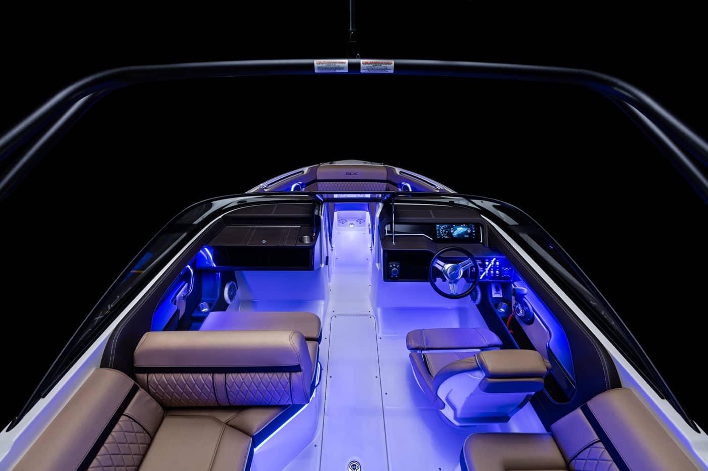 THIS MODEL IS NOT CURRENTLY MANUFACTURED, YOU CAN SEE THE MODELS OF THE RANGE IN THIS LINK. Get used to the stares, because the SLX 230 is sleek, powerful, cutting-edge and completely crush-worthy. You and your guests won't mind, settled into the perfectly accommodating bow or expansive transom lounge. And it's not like you won't share the fun. With capacity for 13, the SLX 230 is the consummate host's perfect party platform. When ready to shift from chilling to running, goose the MerCruiser® power, let the optional Dynamic Running Surface™ perfect your attitude and encourage wakeboarders to throw tantrums. A perfectly composed boat can pump up the adrenaline, too.