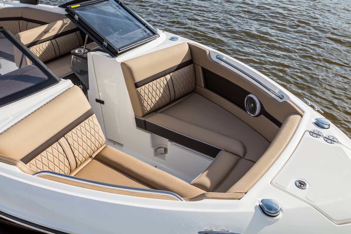 THIS MODEL IS NOT CURRENTLY MANUFACTURED, YOU CAN SEE THE MODELS OF THE RANGE IN THIS LINK. Get used to the stares, because the SLX 230 is sleek, powerful, cutting-edge and completely crush-worthy. You and your guests won't mind, settled into the perfectly accommodating bow or expansive transom lounge. And it's not like you won't share the fun. With capacity for 13, the SLX 230 is the consummate host's perfect party platform. When ready to shift from chilling to running, goose the MerCruiser® power, let the optional Dynamic Running Surface™ perfect your attitude and encourage wakeboarders to throw tantrums. A perfectly composed boat can pump up the adrenaline, too.