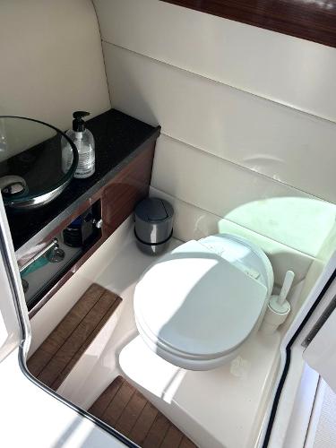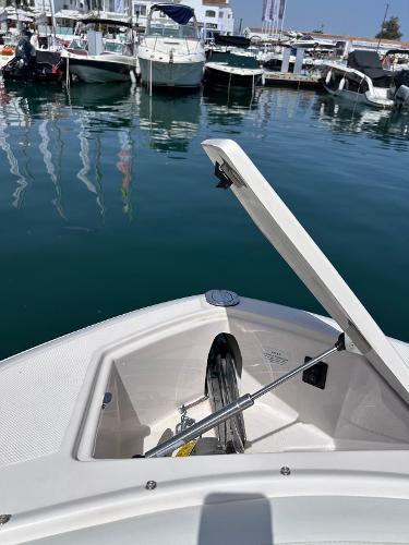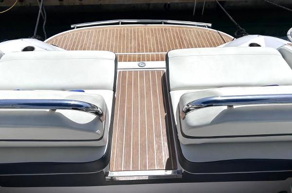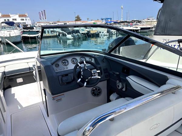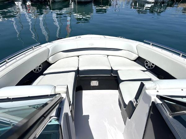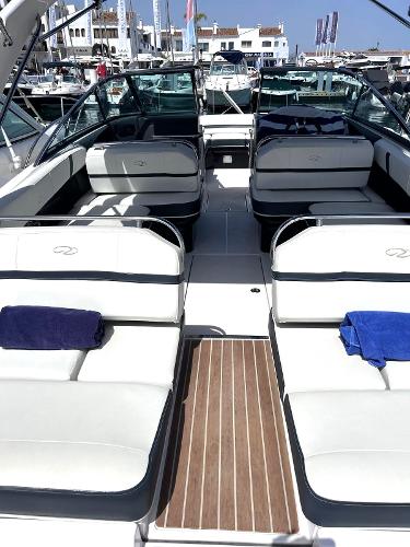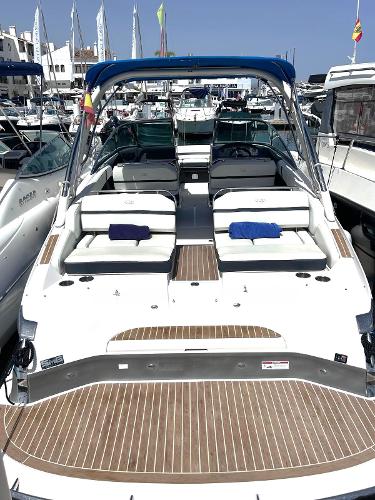 ENGLISH This is a great example of an open bow-raider boat. Regal has developed an elegant boat with a defined style. Spacious cockpit with settees all around. The pilot and co-pilot seats can change their backrest to join the cockpit and participate in the main area.The aft sundeck can change its backrests so that its occupants can either sail forward or aft facing. This boat will offer its occupants ample space, as well as a small full bathroom hidden between the cockpit and the bow area. At the bow another V-shaped settee, with the possibility of converting it into either a sundeck or an L-shaped settee and armchair. A Volvo V8 petrol engine develops 320 hp giving this unit a top speed of 39 knots. ESPAÑOL Este es un gran ejemplo de una lancha con proa abierta. Regal a desarrollado una embarcación elegante y con un estilo definido. Amplia bañera con sofás todo alrededor. Los asientos de piloto y copiloto pueden cambiar su respaldo para unirse a la bañera y participar de la zona principal.El solárium de popa puede cambiar sus respaldos tanto para que sus ocupantes naveguen de cara a proa como para que estén de cara a popa. Esa embarcación ofrecerá a sus ocupantes un amplio espacio, además de un pequeño baño completo escondido entre la bañera y la zona de proa. En la proa otro sofá en forma de V, con la posibilidad de convertirlo tanto en solárium como sofá en L y sillón. Un motor de gasolina de Volvo V8 desarrolla 320 caballos de potencia otorgando a esta unidad una velocidad...