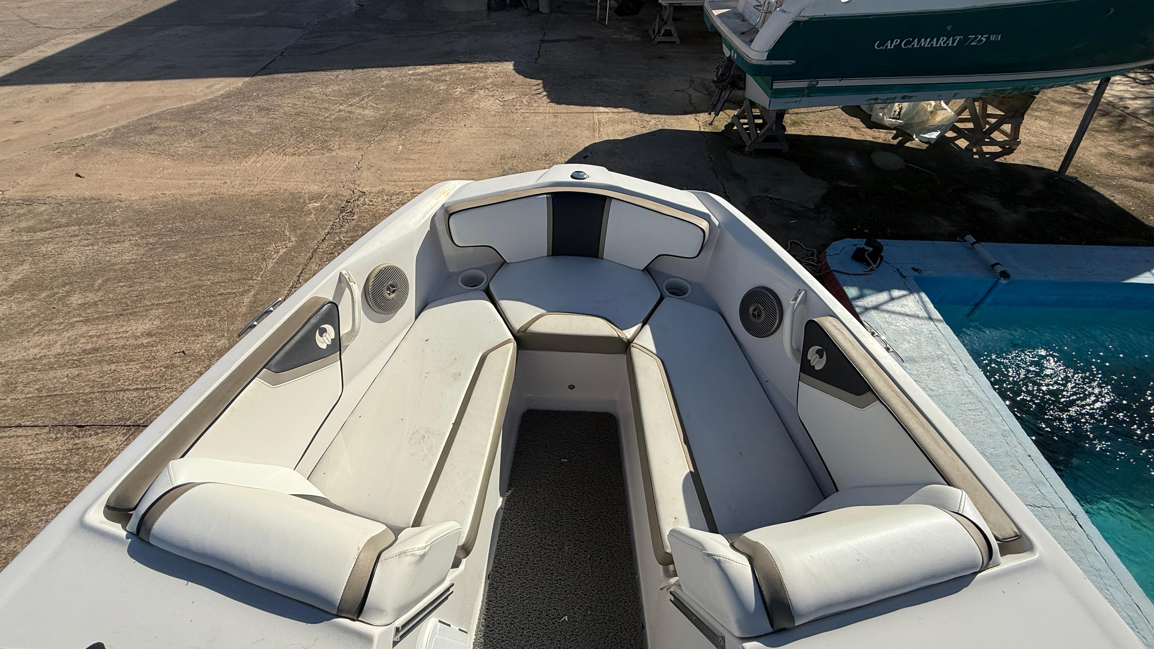 Embarcación de proa abierta. Solarium trasero, plataforma de baño integrada. Motor Mercruiser 5.0 Mpi (260 cv), 650 horas, colectores y servicios recién hechos. Bandera española IVA pagado.