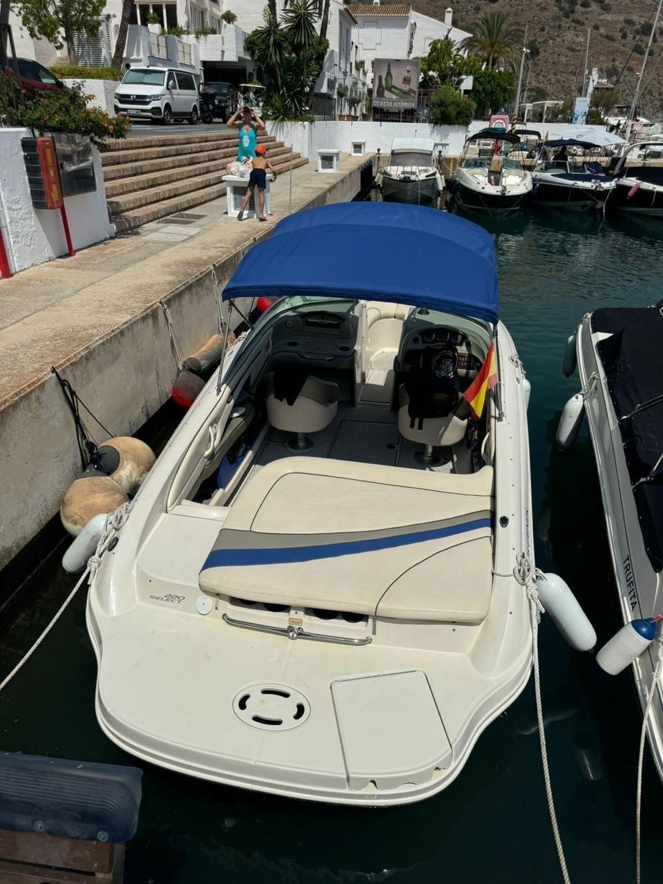 Embarcación de proa abierta. Solarium trasero, plataforma de baño integrada. Motor Mercruiser 5.0 Mpi (260 cv), 650 horas, colectores y servicios recién hechos. Bandera española IVA pagado.
