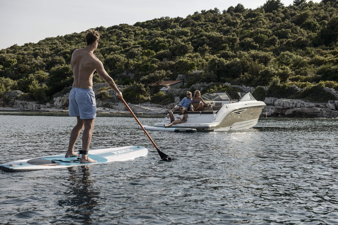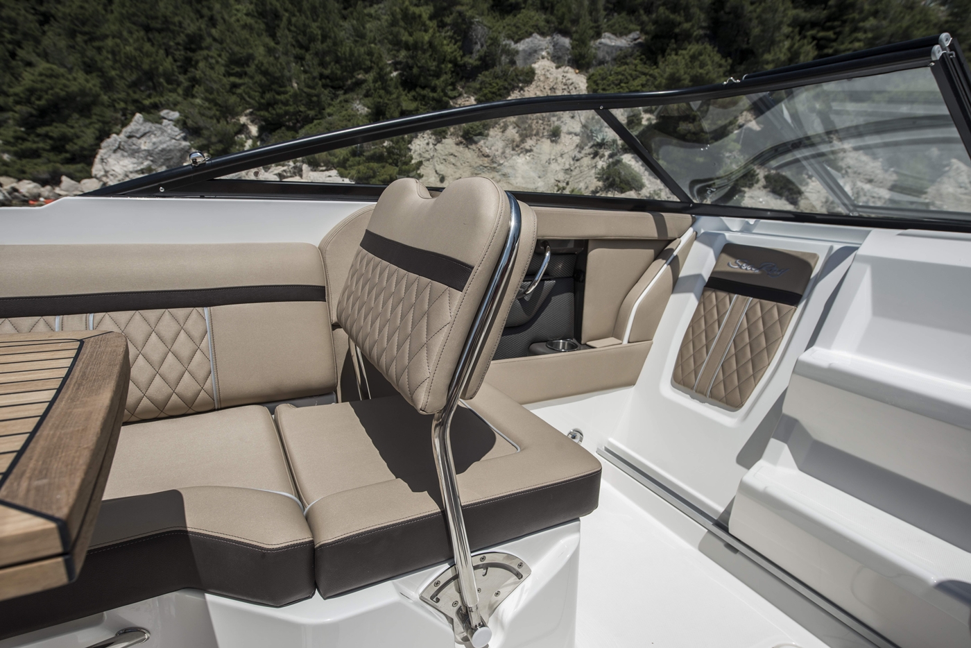 El Sun Sport 250 hace honor a su nombre, equipada de serie con una cómoda colchoneta de proa, ideal para largas jornadas y un casco diseñado para ofrecer el máximo rendimiento.