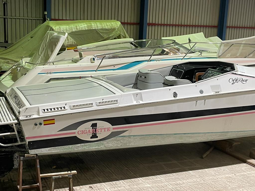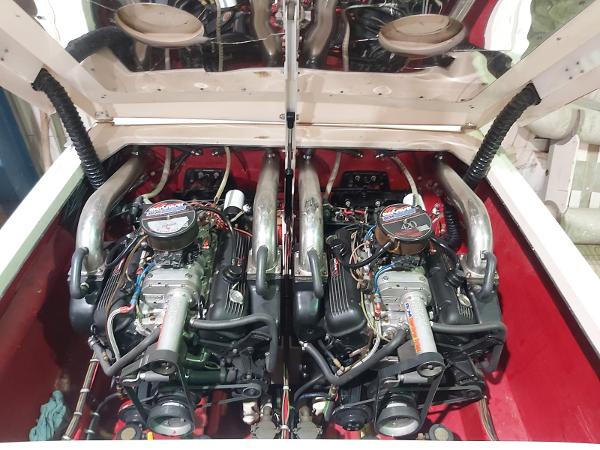 Español interior: Cama doble proa, TV extraíble, Cama doble popa, Mesa dinette 4 plazas transformable en cama una persona, Lavamano,Cocina vitrocerámica,Frigorífico 12V-220V,Microondas ,baño con WC eléctrico vacuflush, Ducha con cortina, cuadro...