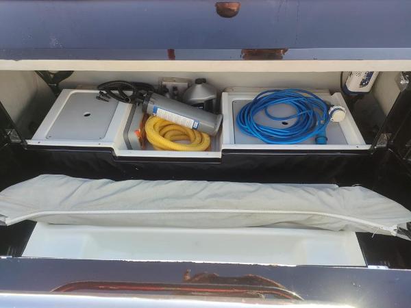 Español interior: Cama doble proa, TV extraíble, Cama doble popa, Mesa dinette 4 plazas transformable en cama una persona, Lavamano,Cocina vitrocerámica,Frigorífico 12V-220V,Microondas ,baño con WC eléctrico vacuflush, Ducha con cortina, cuadro...