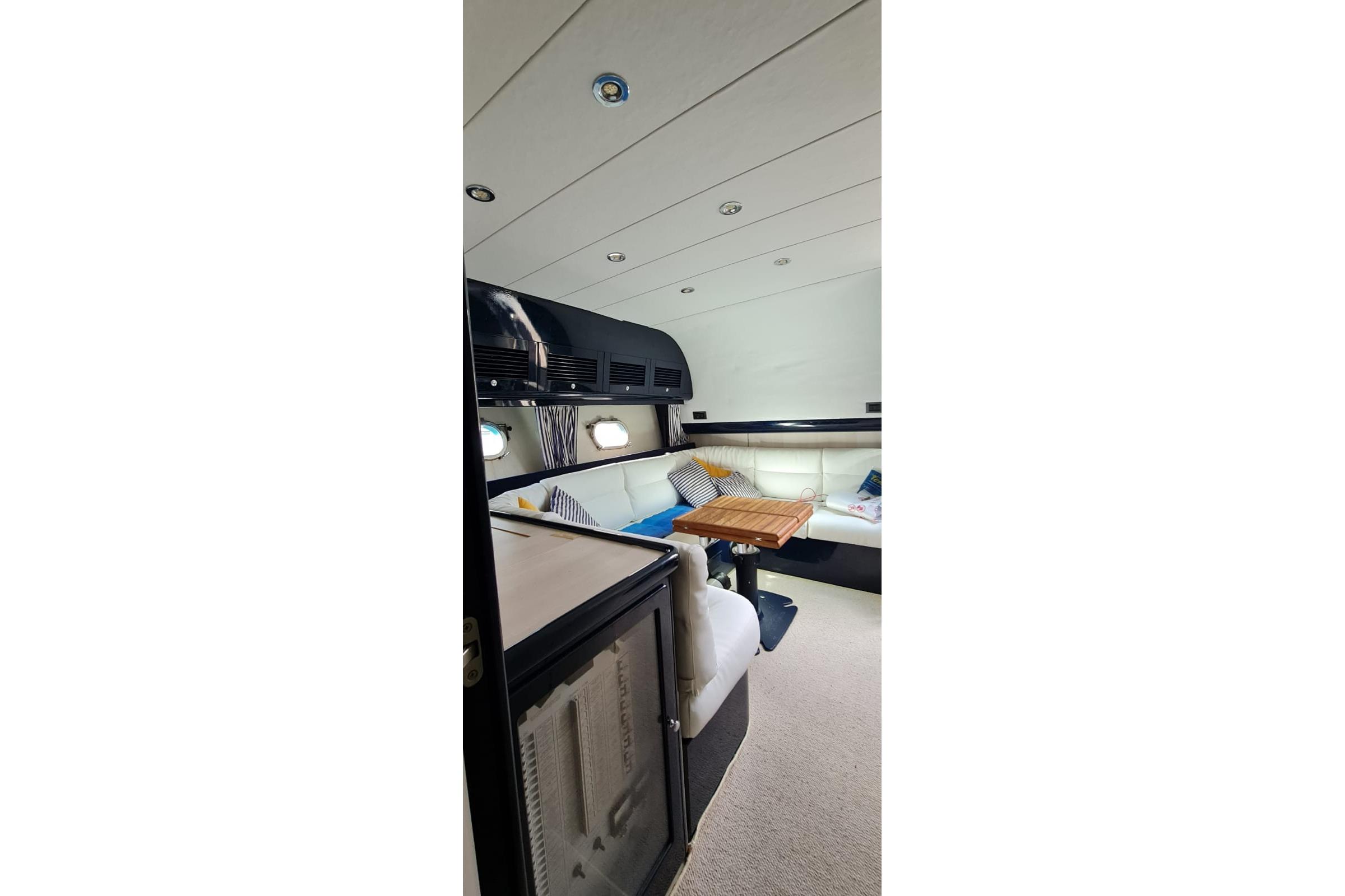 This Sunseeker Superhawk 40 - 2000 with 1 double forward cabin, convertible salon and 1 head, is powered by the Trimax surface piercing propeller system with 420 hp per engine...
